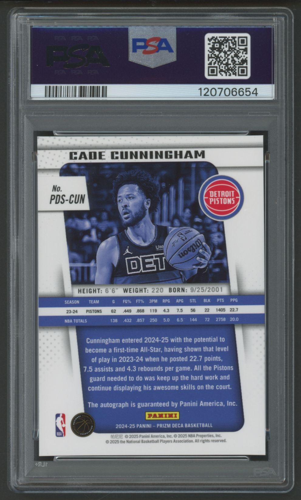 Cade Cunningham 2024 Panini Prizm Deca Signature #PDSCUN (PSA 10)