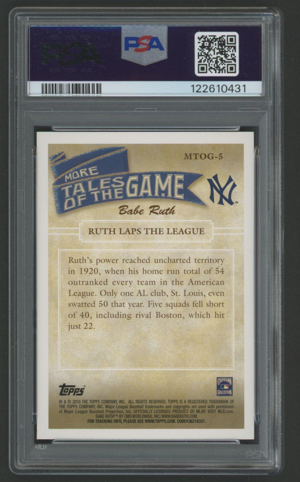 Babe Ruth 2010 Topps Update More Tales Of Game #MTOG5 (PSA 10)
