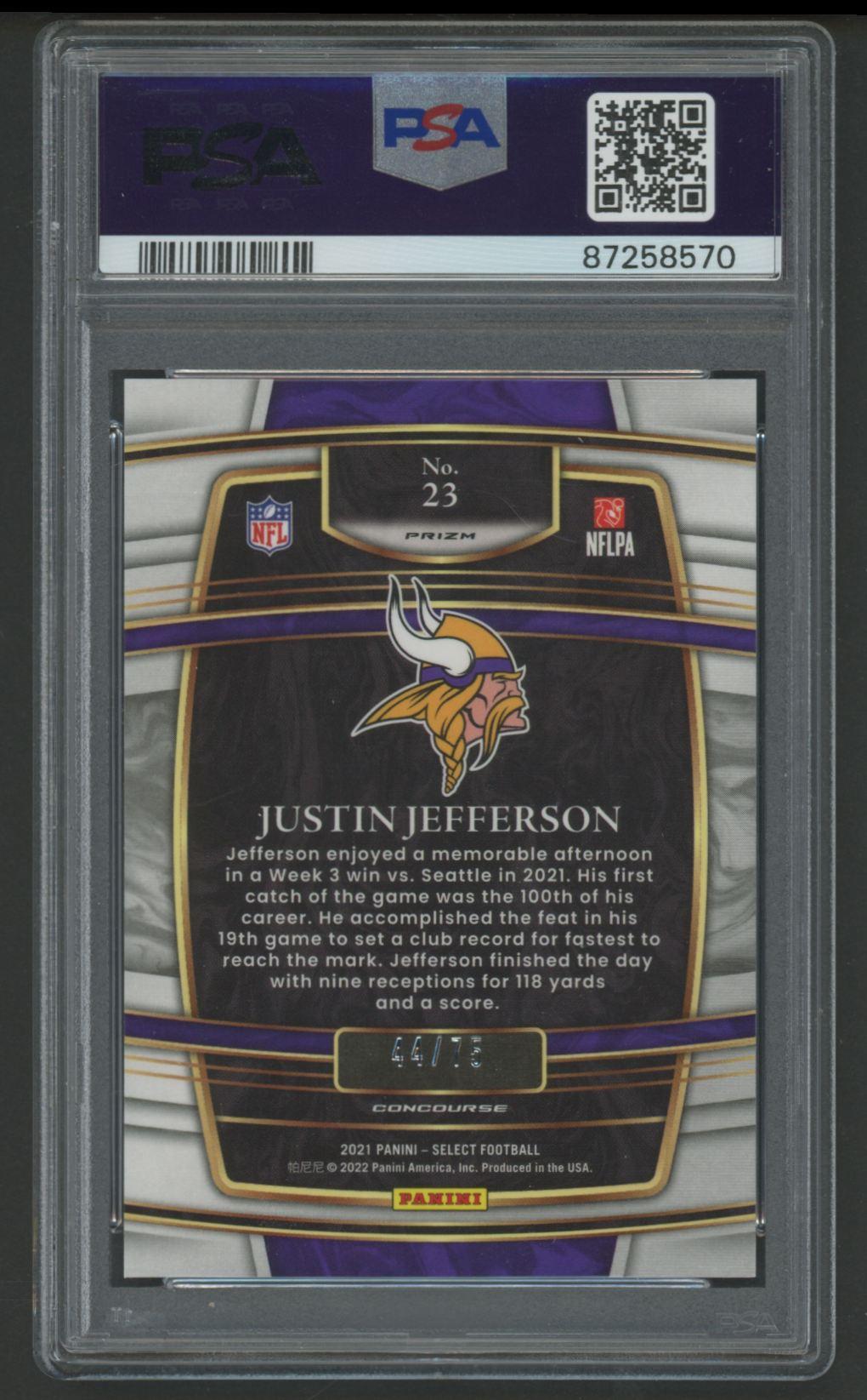 Justin Jefferson 2021 Select Purple Prizm #23 #44/75 (PSA 9)