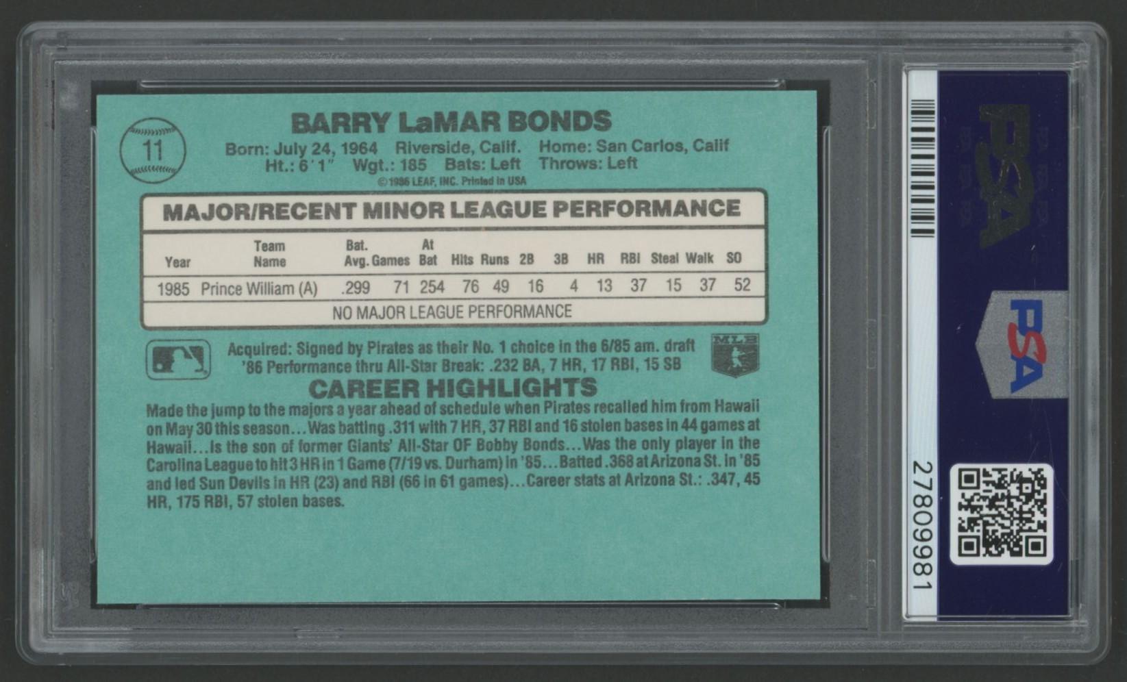 Barry Bonds 1986 Donruss The Rookies #11 (PSA 9)