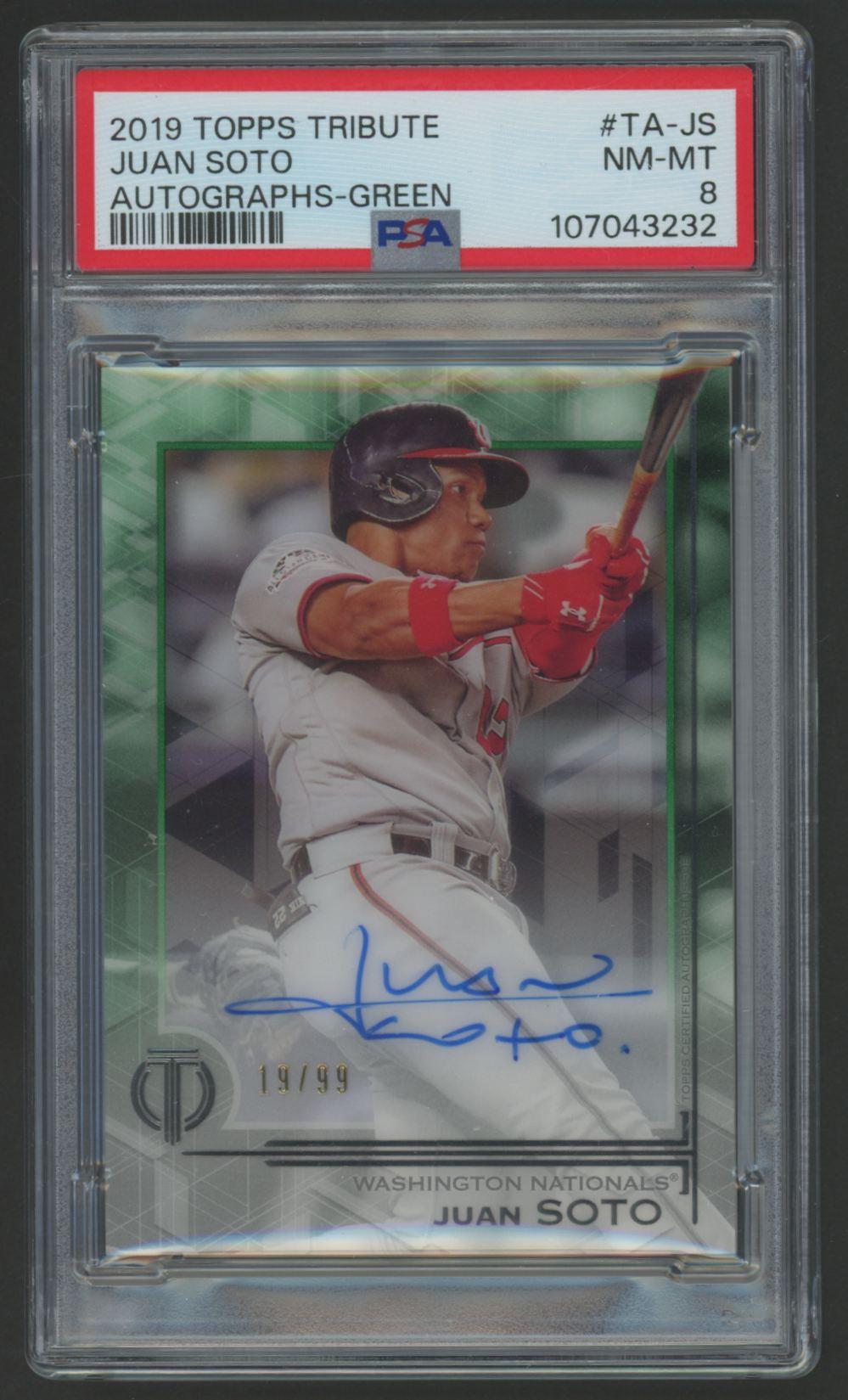 Juan Soto 2019 Topps Tribute Autographs Green #TAJS #19/99 (PSA 8)