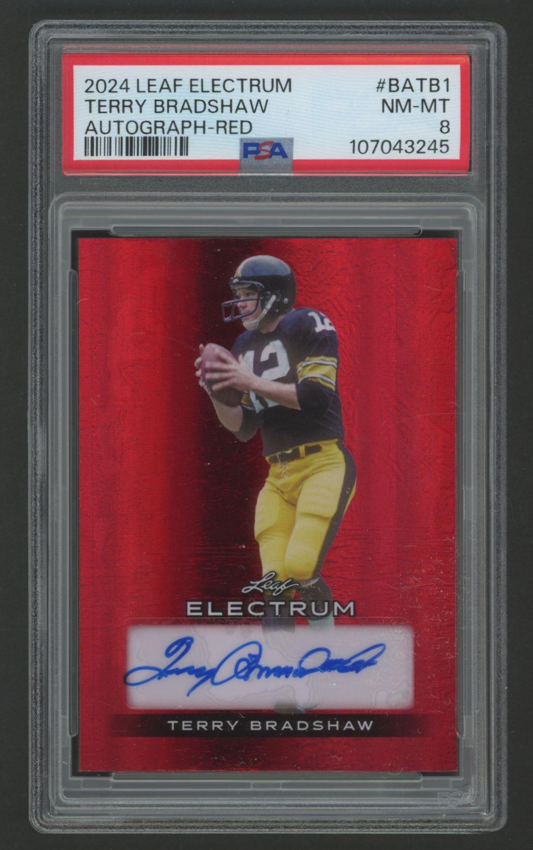 Terry Bradshaw 2024 Leaf Electrum Autographed Red #BATB1 #2/2 (PSA 8)