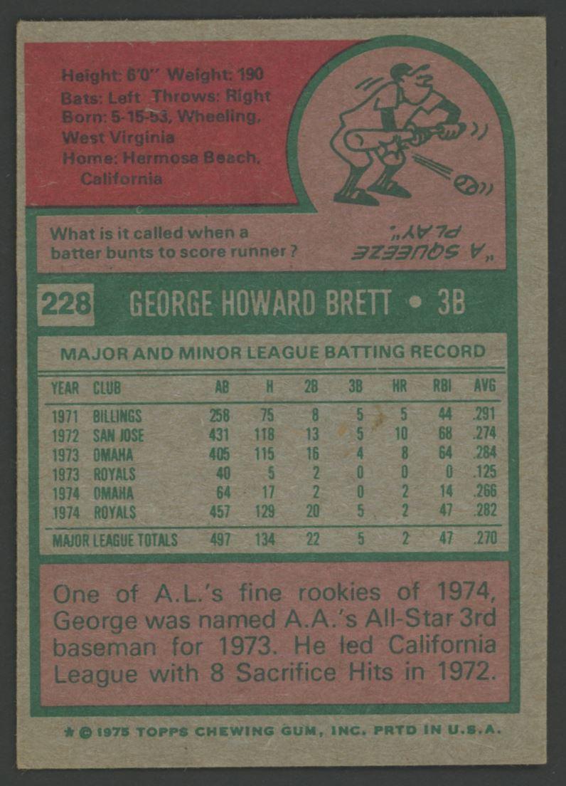 George Brett 1975 Topps #228 RC