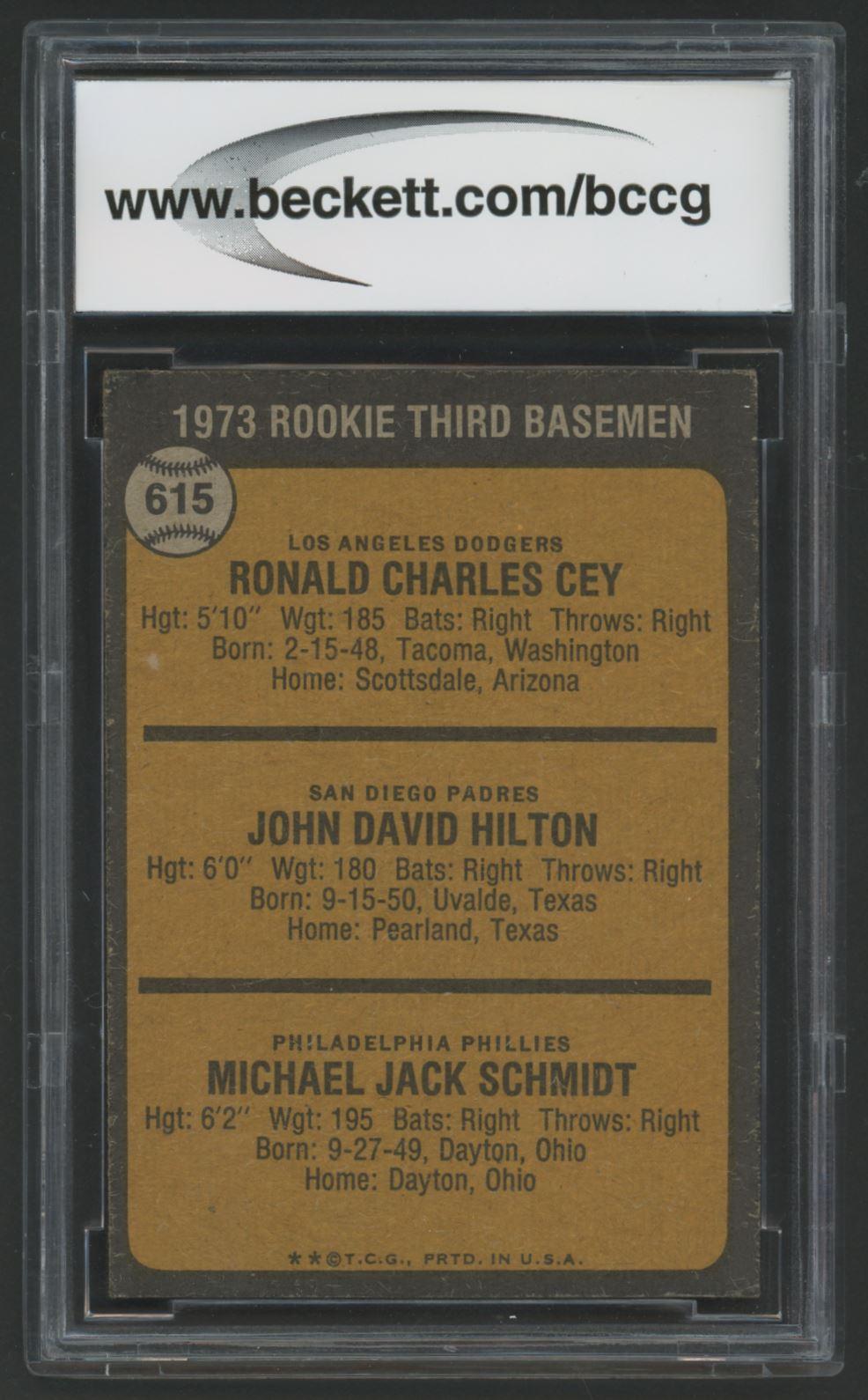 Ron Cey / John Hilton / Mike Schmidt 1973 Topps #615 Rookie Third Basemen RC (BCCG 8)