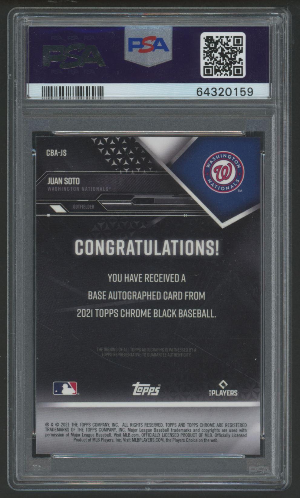 Juan Soto 2021 Topps Chrome Black Autographs #JS (PSA 10)