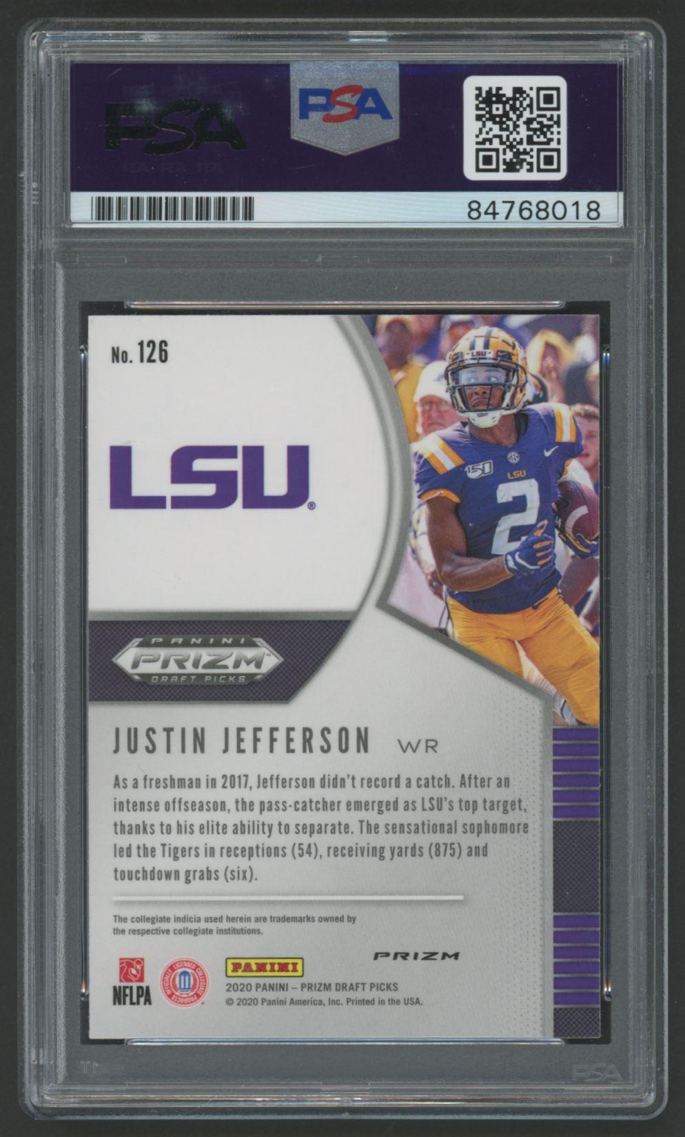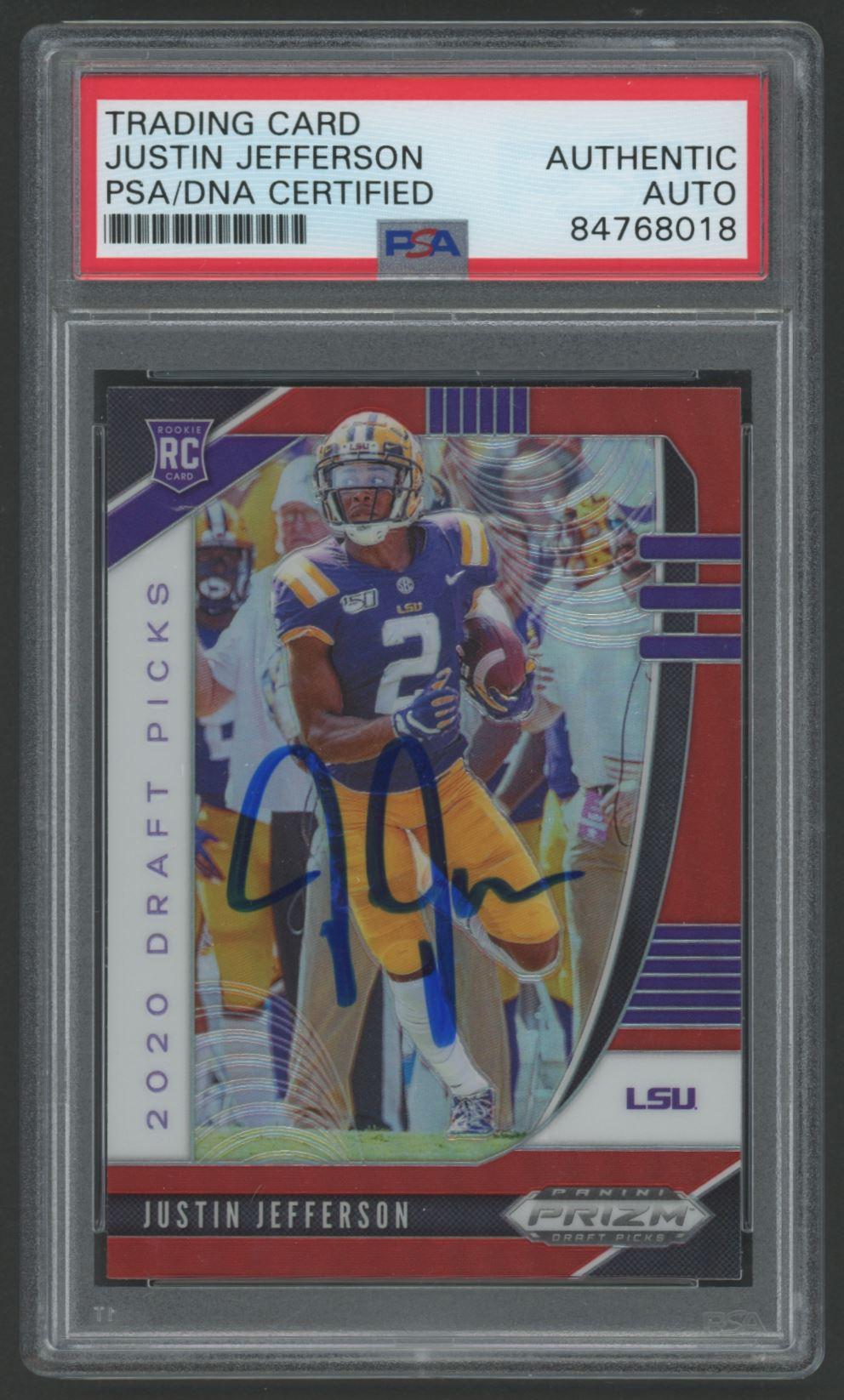Justin Jefferson Signed 2020 Panini Prizm Draft Pick Red Prizm #126 (PSA)