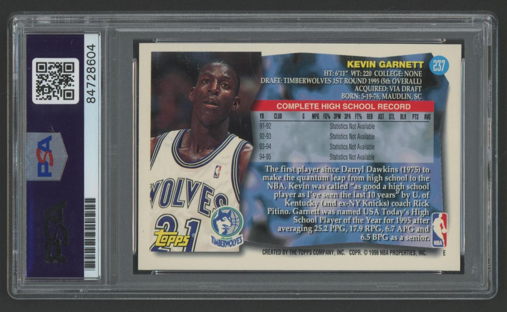 Kevin Garnett Signed 1995 Topps #237 (PSA | Autograph Graded 10)