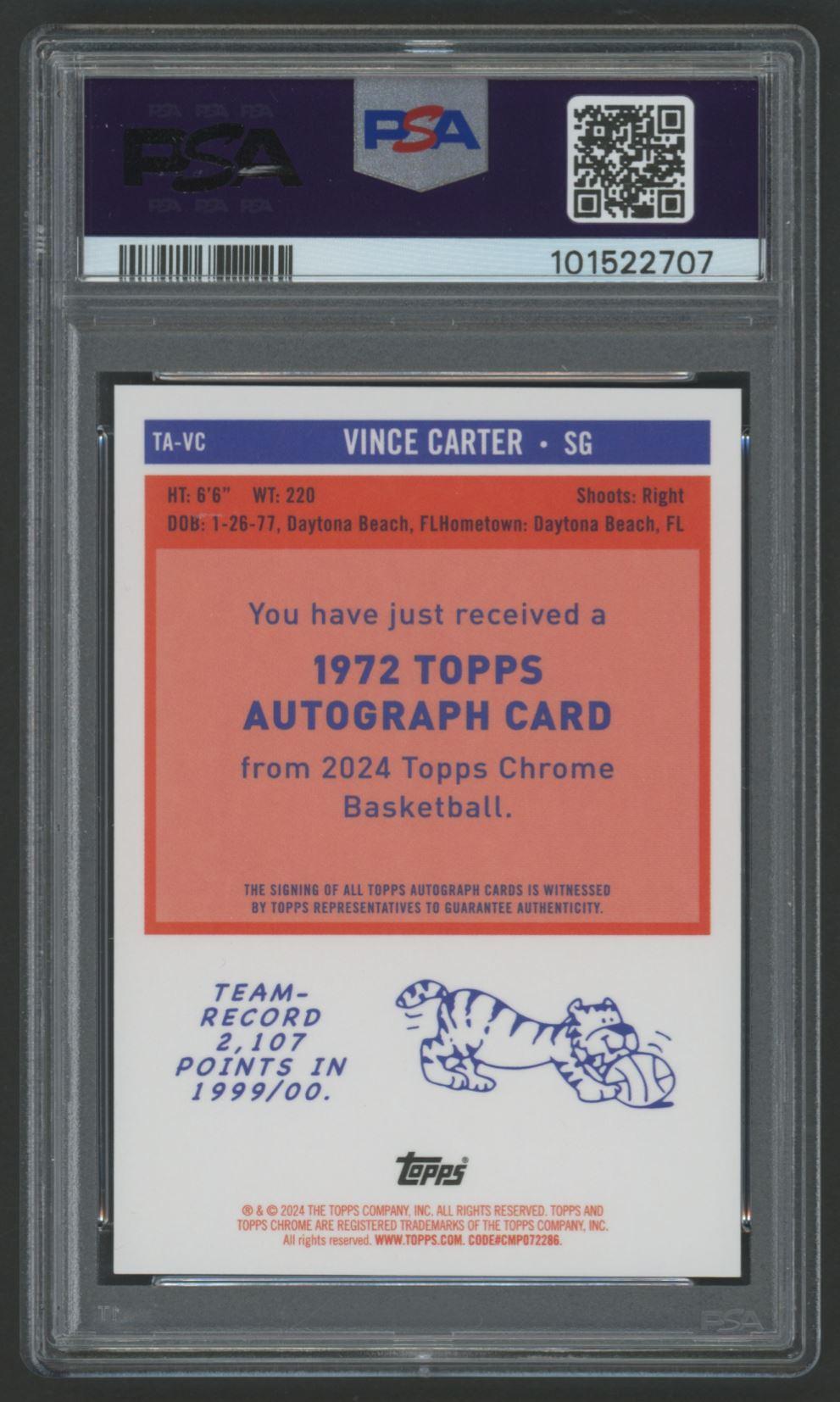 Vince Carter 2023 Topps Chrome / 1972 Topps Purple Geo Autographs #TAVC (PSA 9)