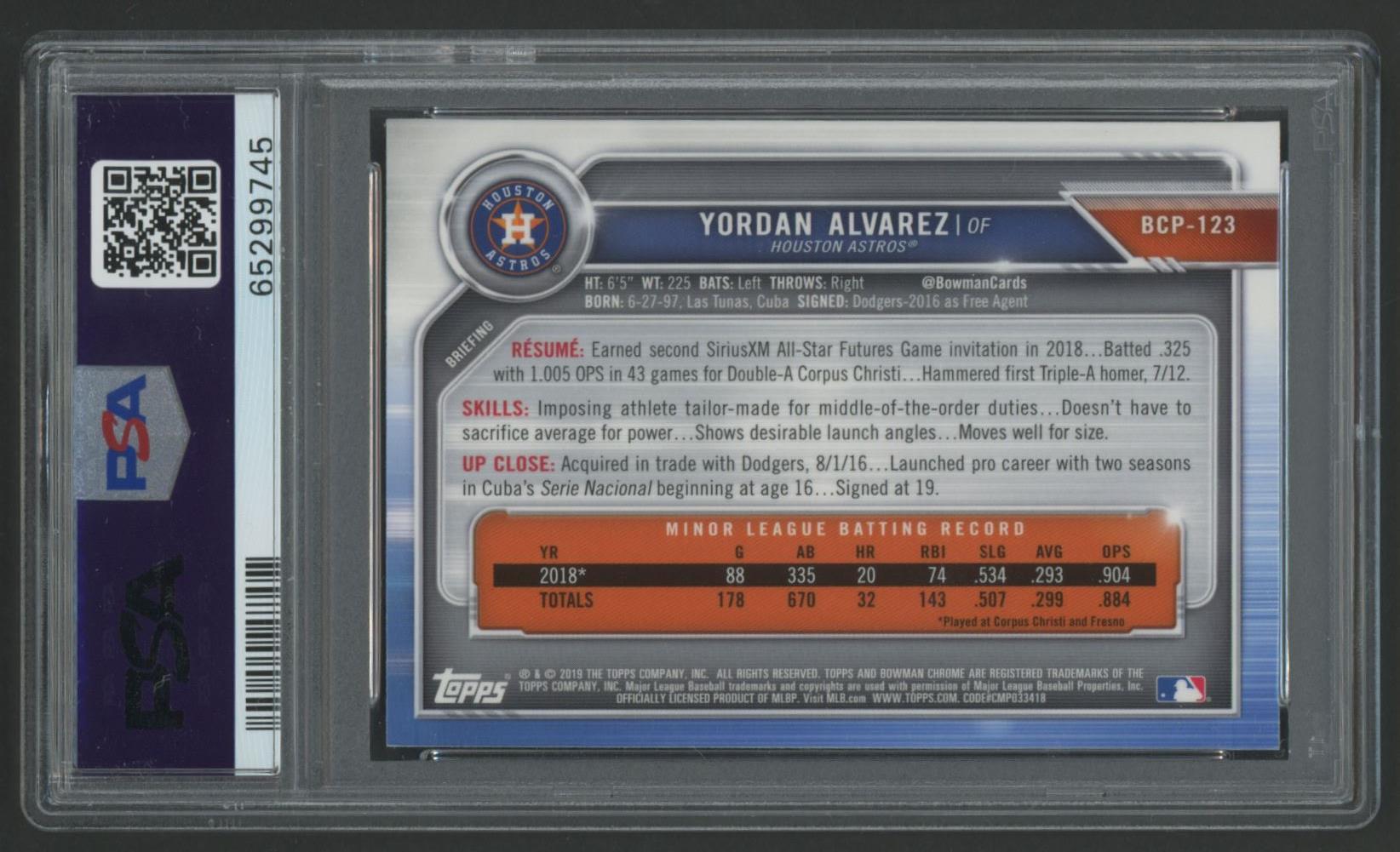 Yordan Alvarez 2019 Bowman Chrome Mega Box Prospects #BCP123 (PSA 10)