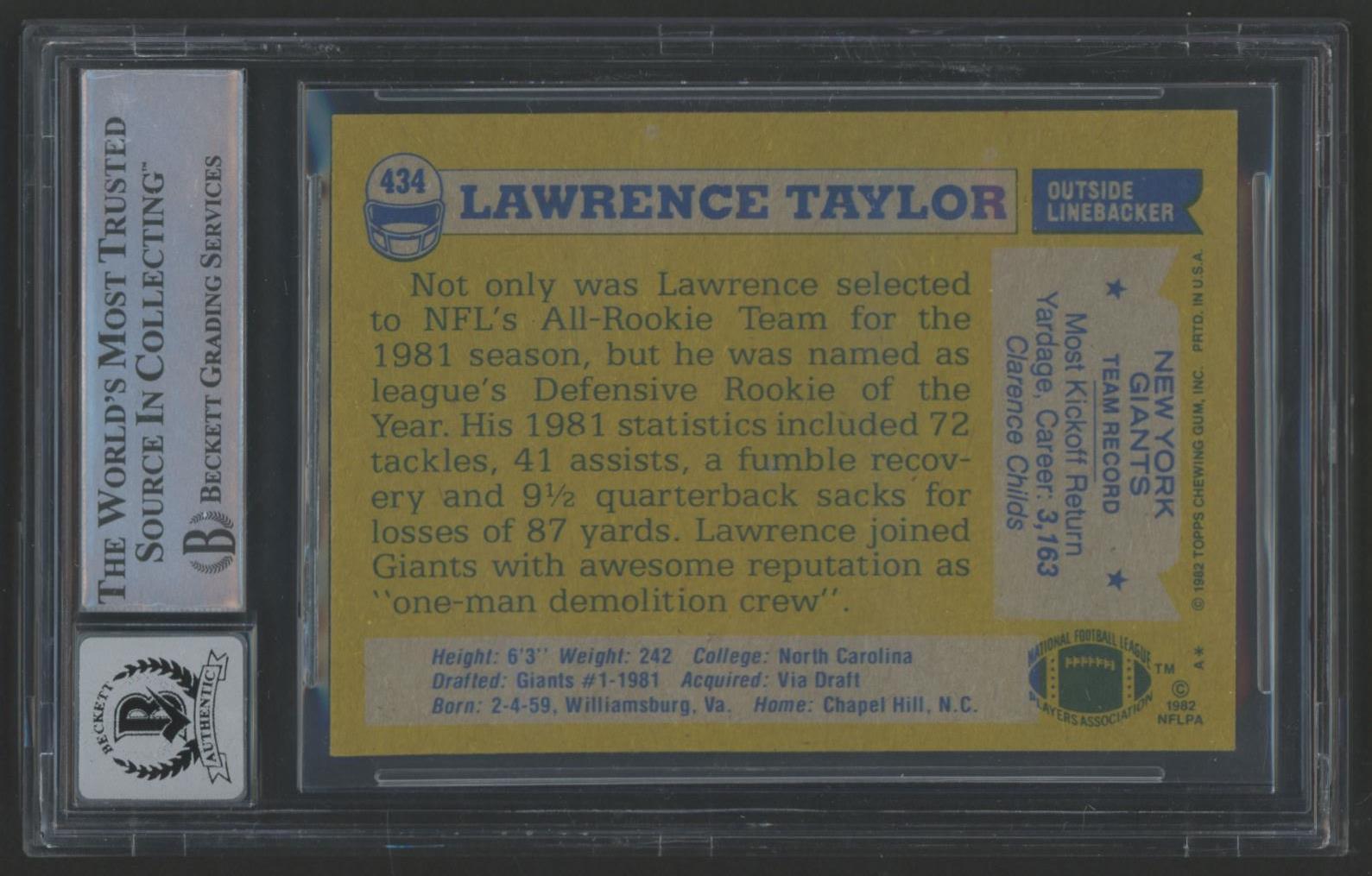 Lawrence Taylor Signed 1982 Topps #434 RC Inscribed "HOF 99" (BGS | Autograph Graded 10)
