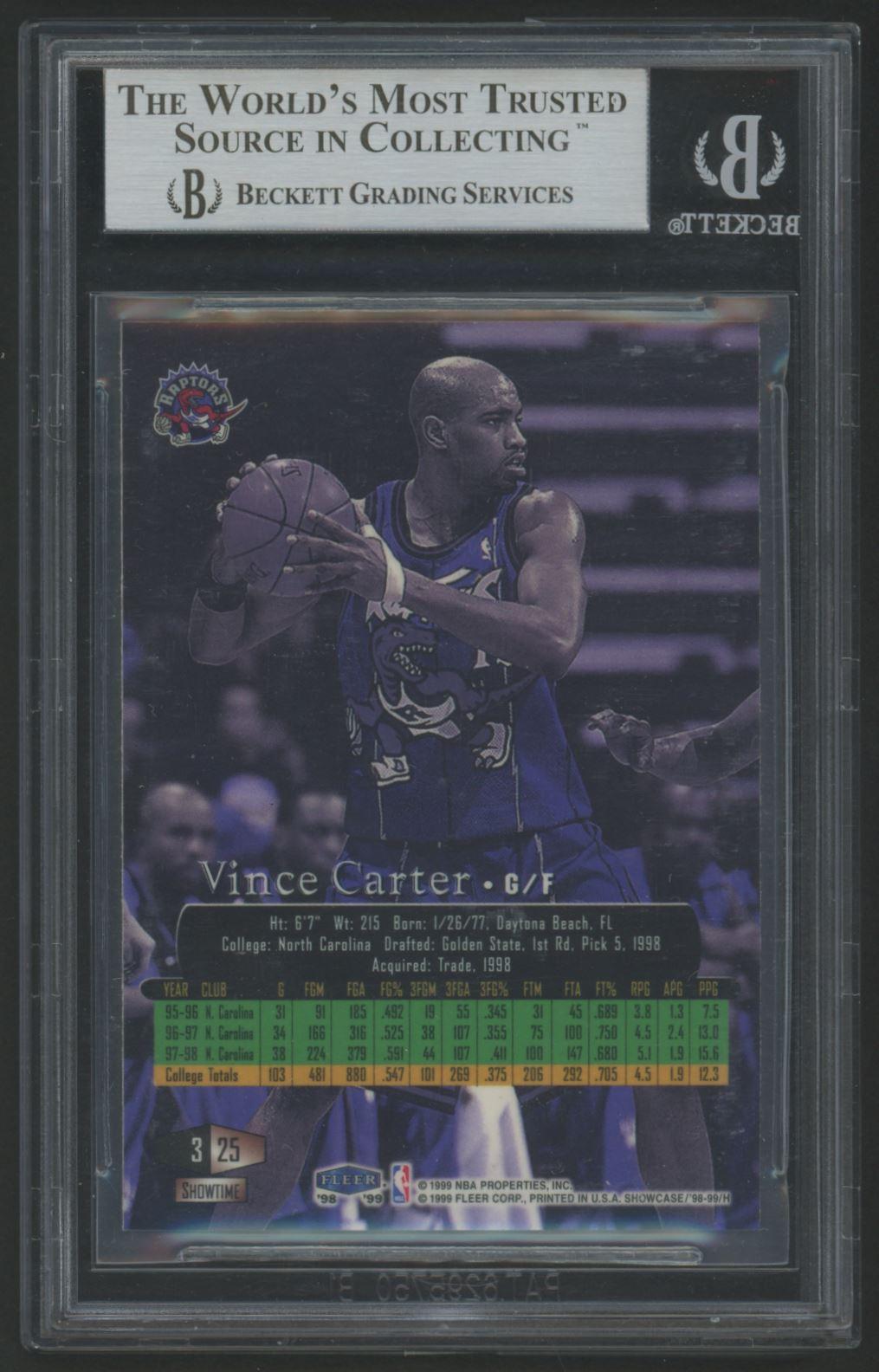 Vince Carter Signed 1998-99 Flair Showcase Legacy Collection Row 3 #25 (BGS)