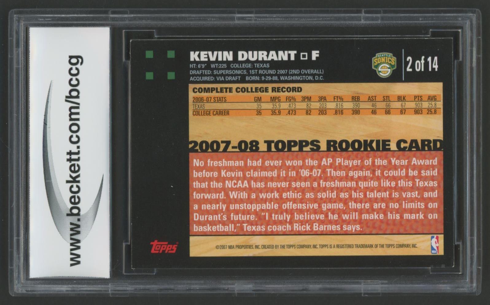 Kevin Durant 2007-08 Topps Rookie Set #2 (BCCG 9)
