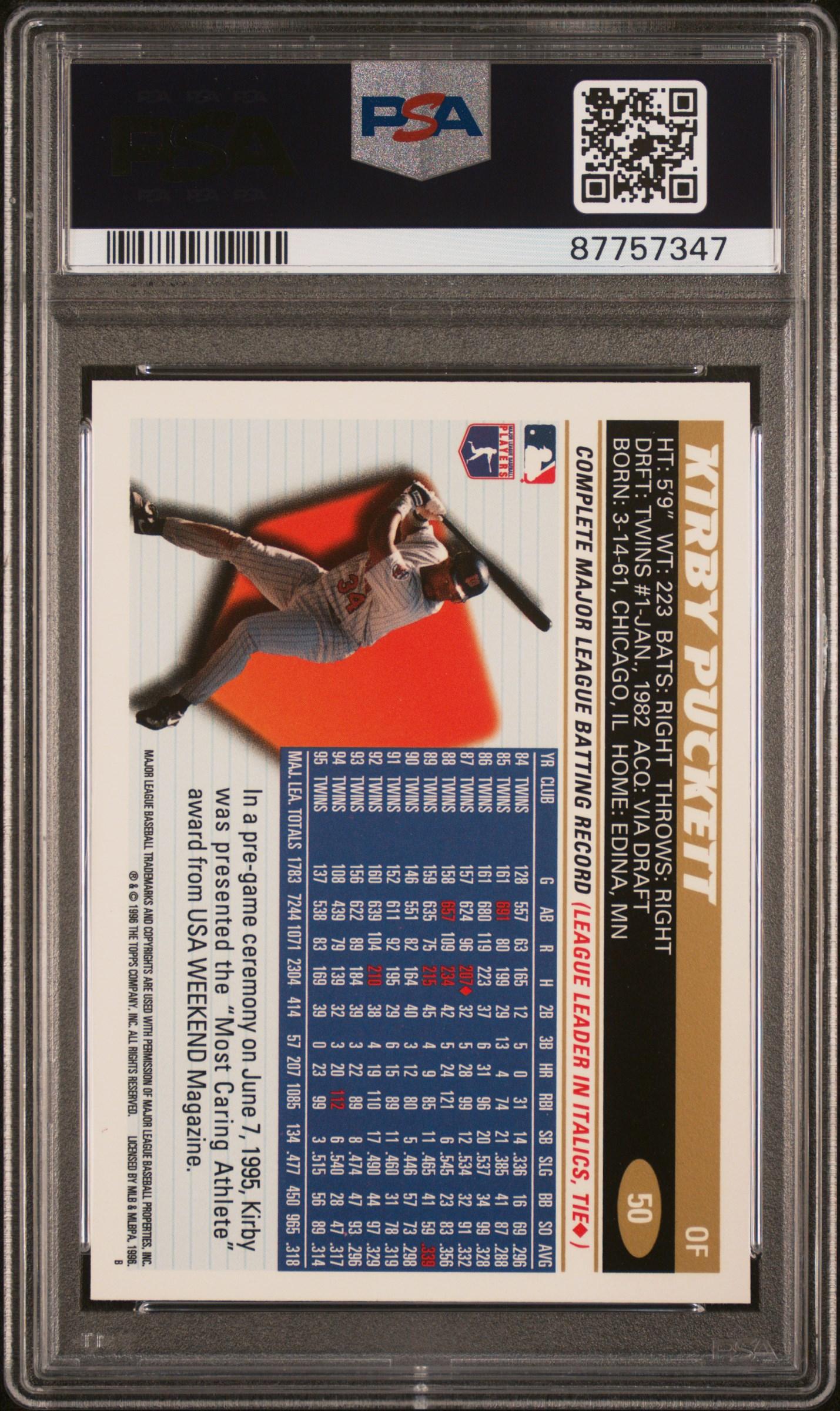 Kirby Puckett 1996 Topps #50 (PSA 10)