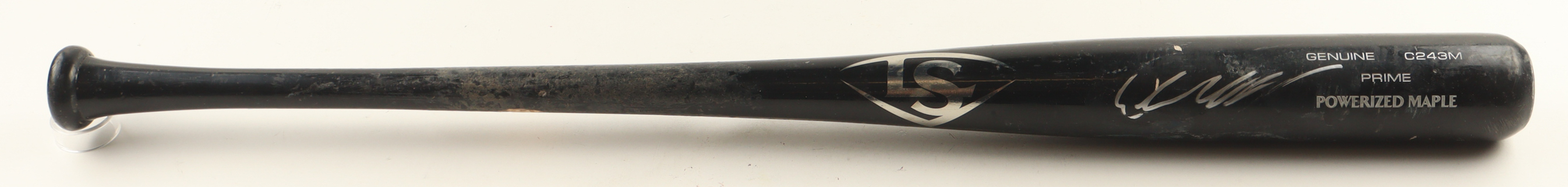 Louisville Slugger Powerized Maple Baseball Bat. Hand-signed by Ethan Holliday (Colorado Rockies). Please note, the bat has been game-used by an unknown player.