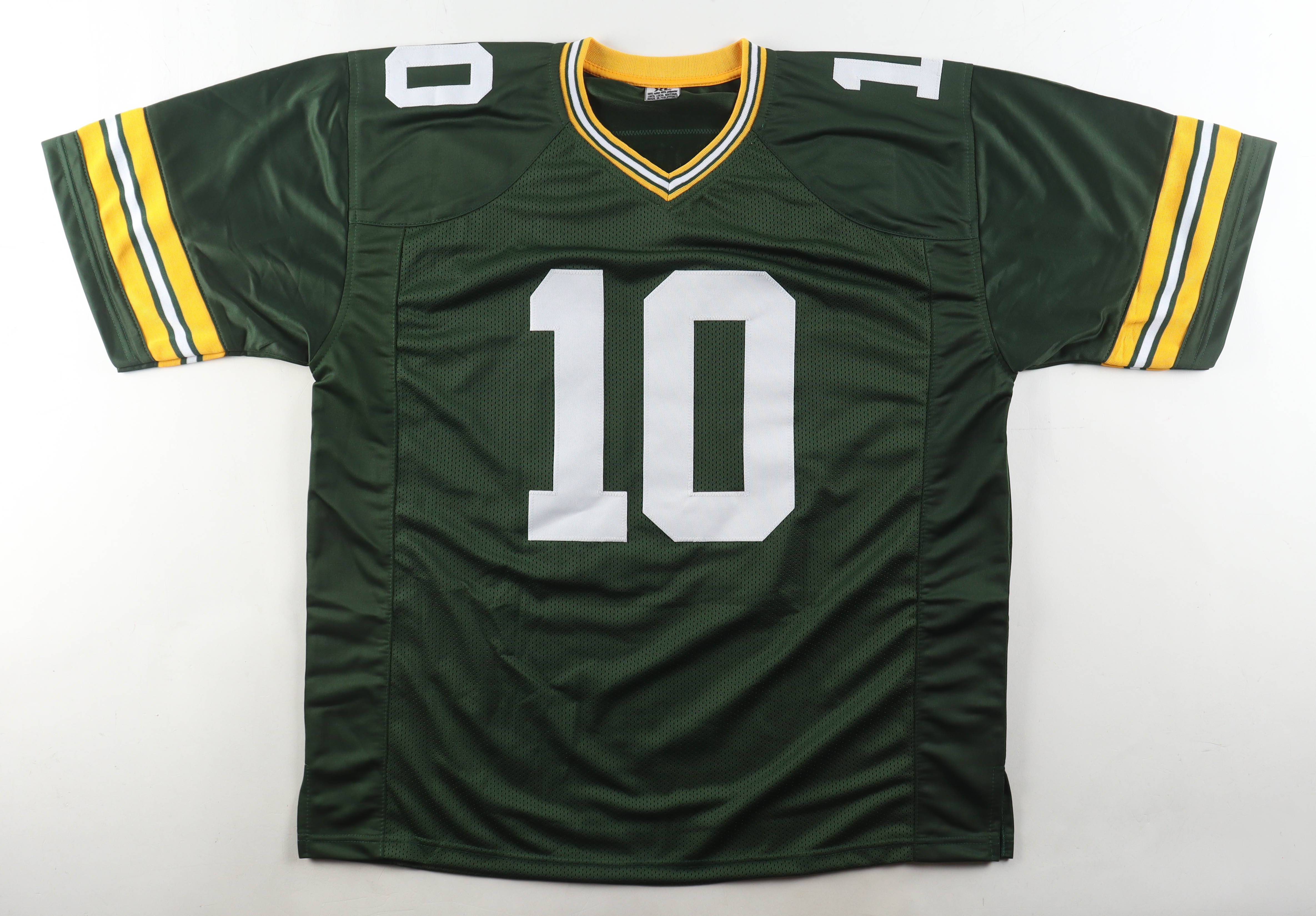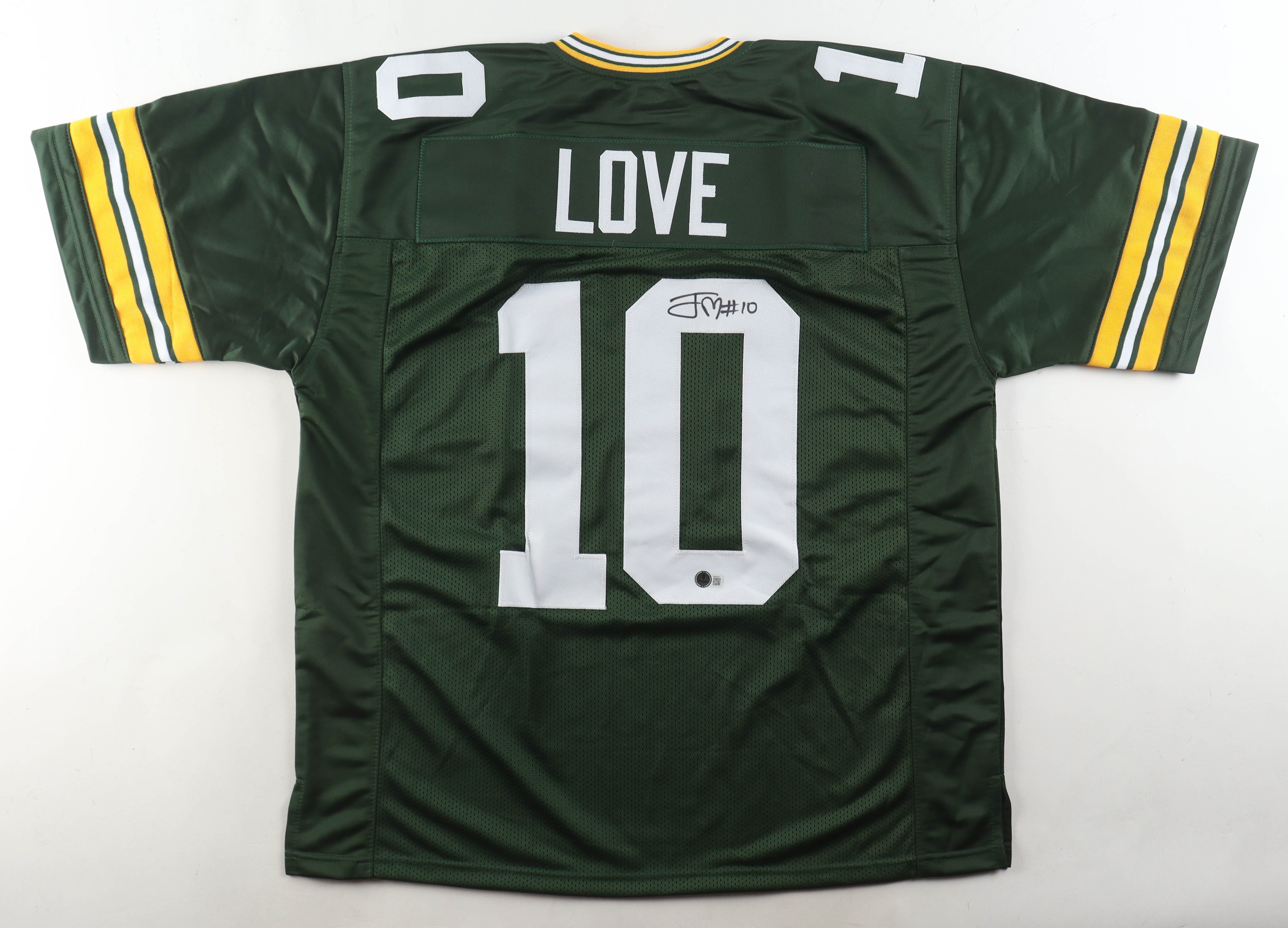 Custom jersey with everything sewn on, size XL. Hand-signed by Jordan Love.
