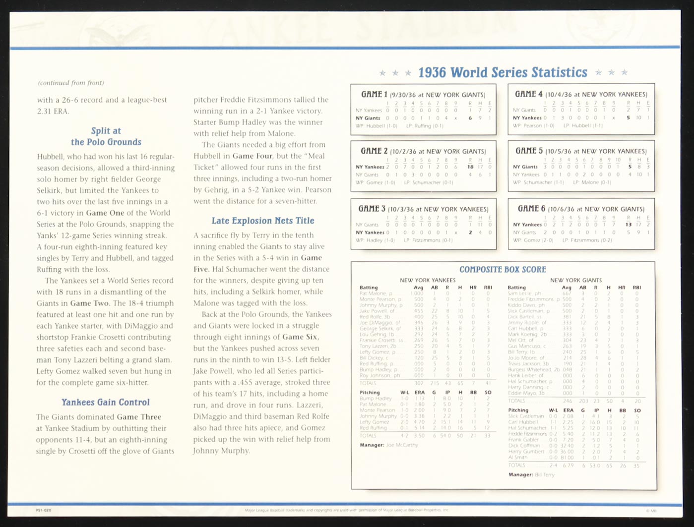 1936 World Series vintage uniform patch. Display also includes an informational article.