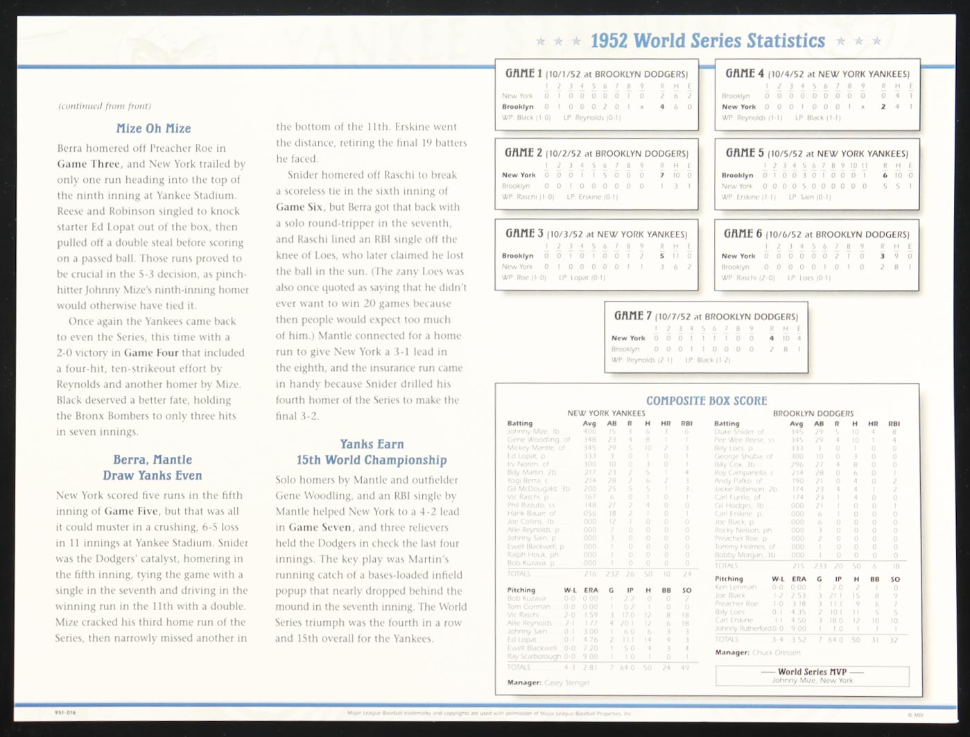 1952 World Series vintage uniform patch. Display also includes an informational article.