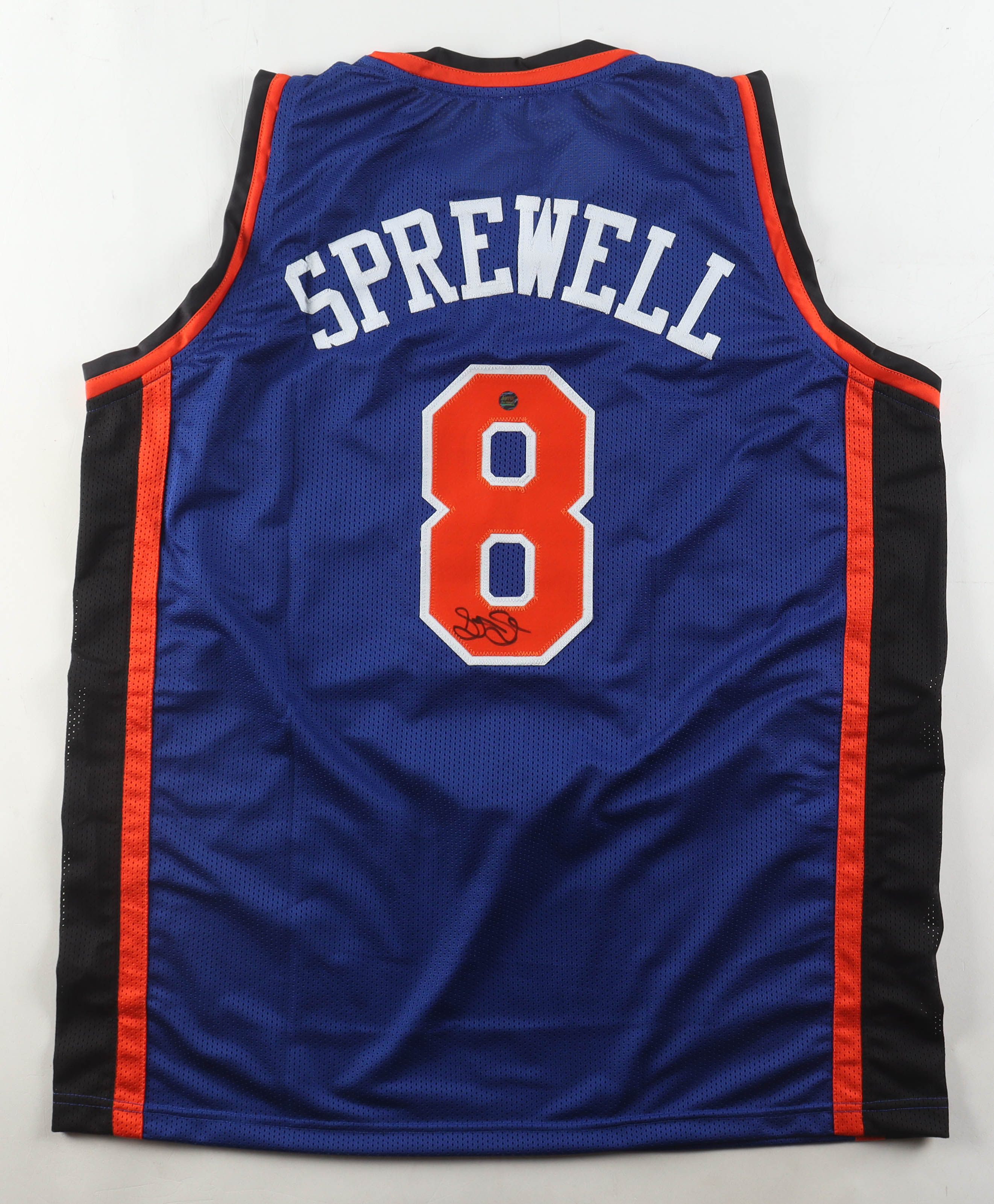 Custom jersey with everything sewn on, size XL. Hand-signed by Latrell Sprewell.