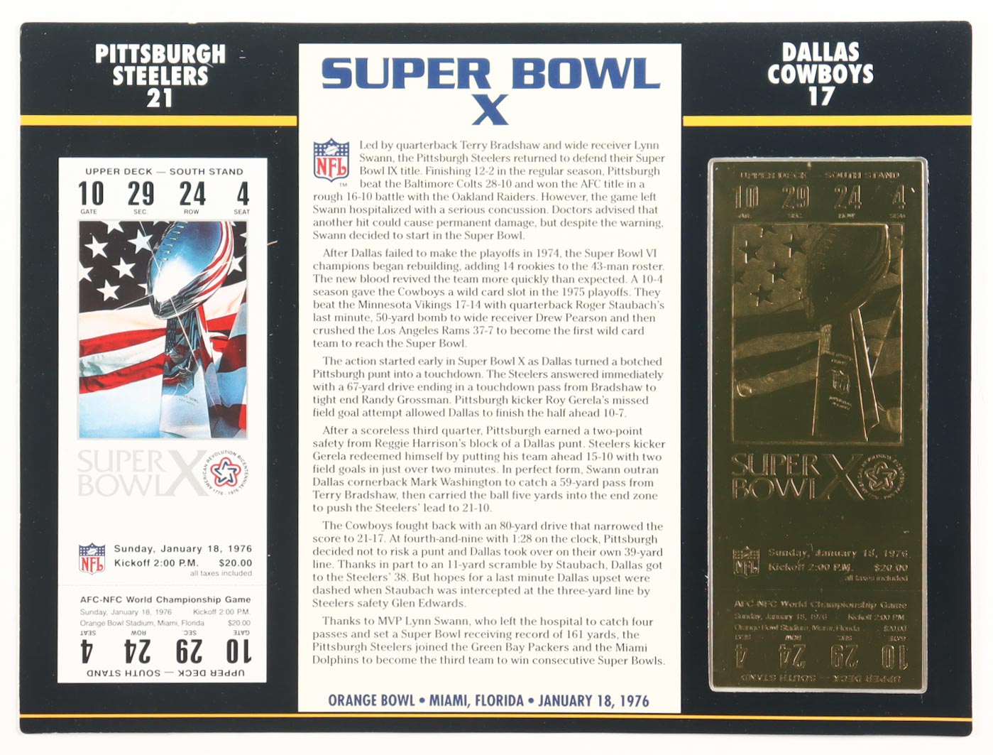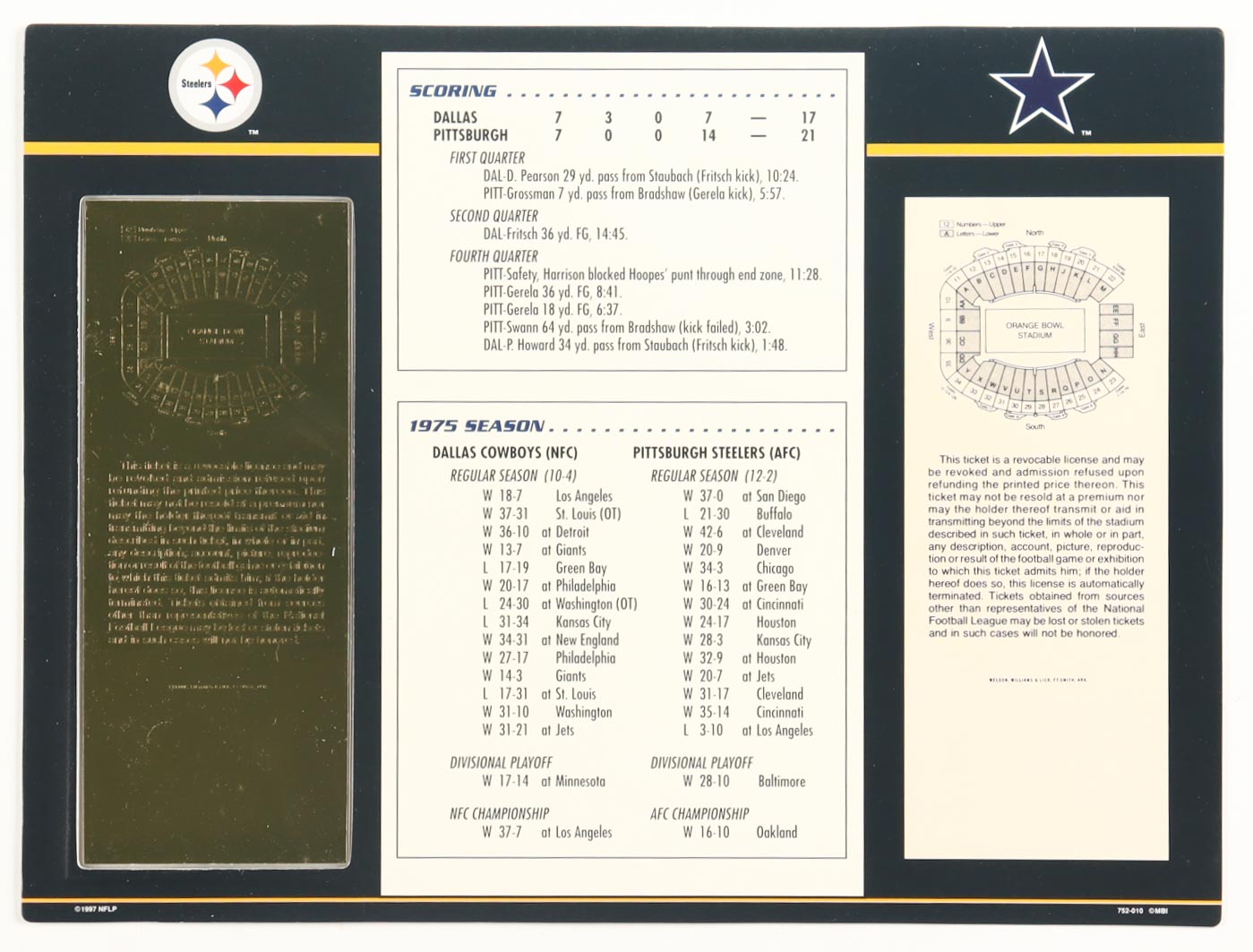1976 Super Bowl X 23KT Gold Commemorative Ticket Display