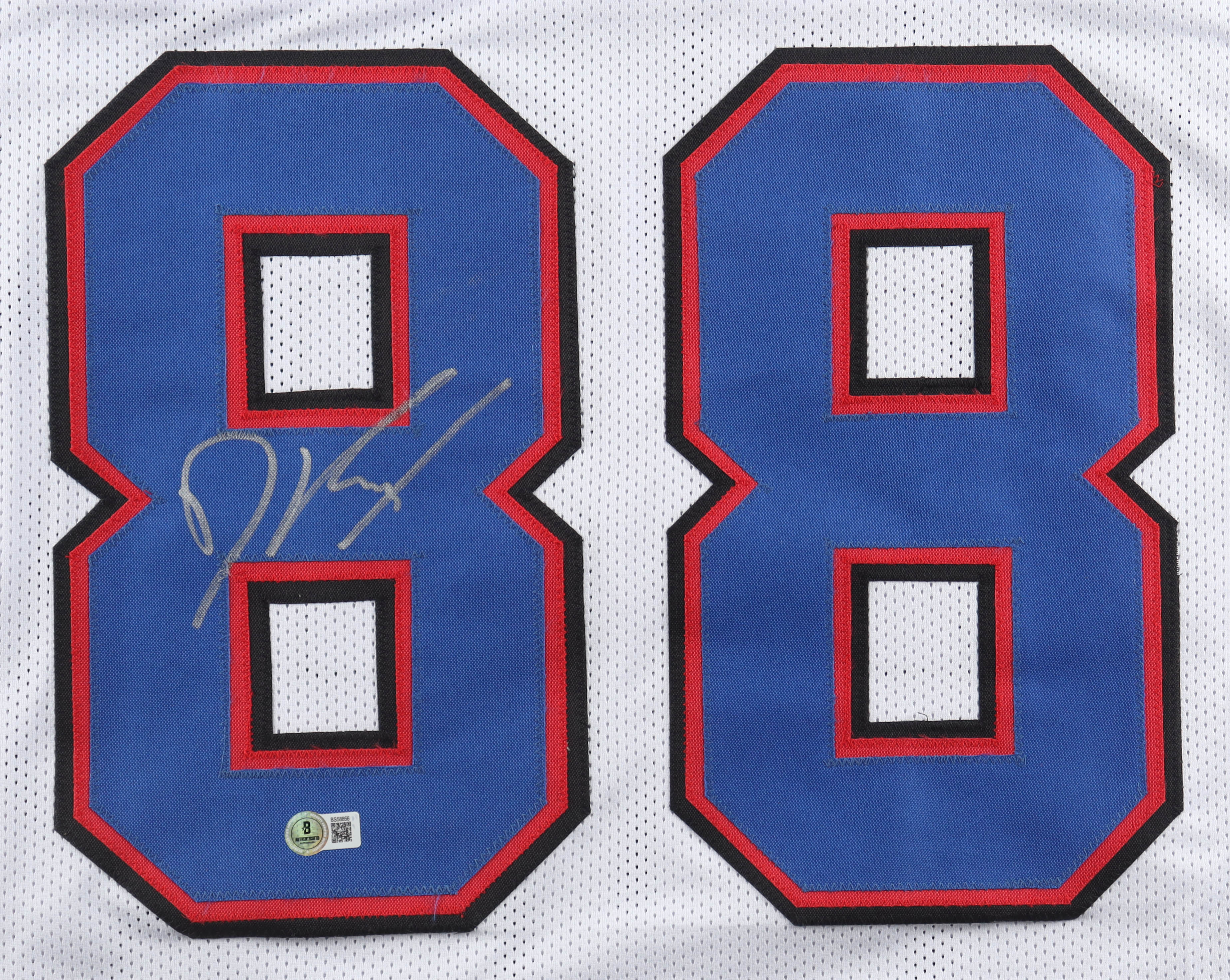 Custom jersey with everything sewn on, size XL. Hand-signed by Dawson Knox.