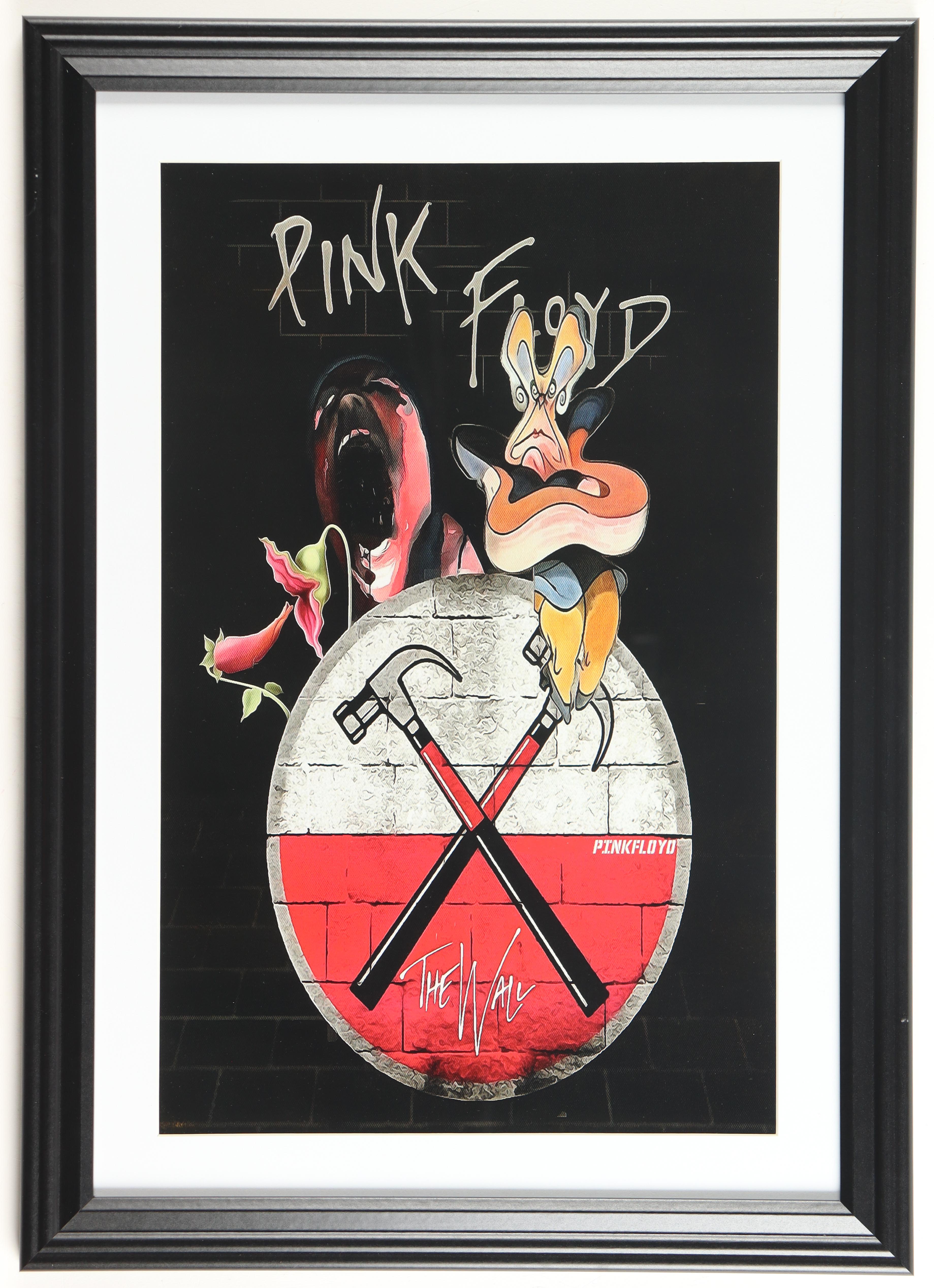 Custom frame measures approximately 15" x 21" in size. The display features a Pink Floyd: The Wall 1982 custom print. Please note frame is unsigned.