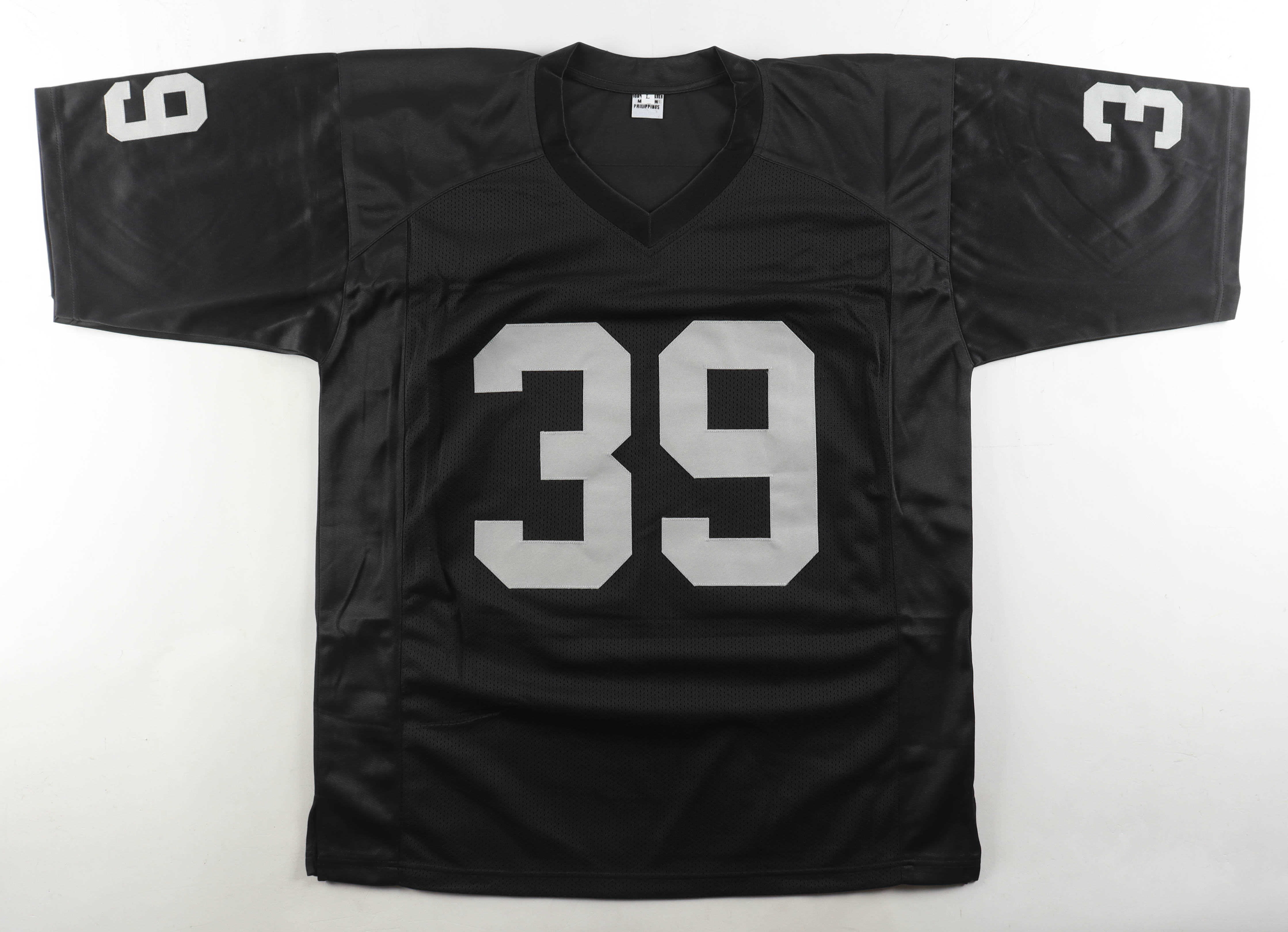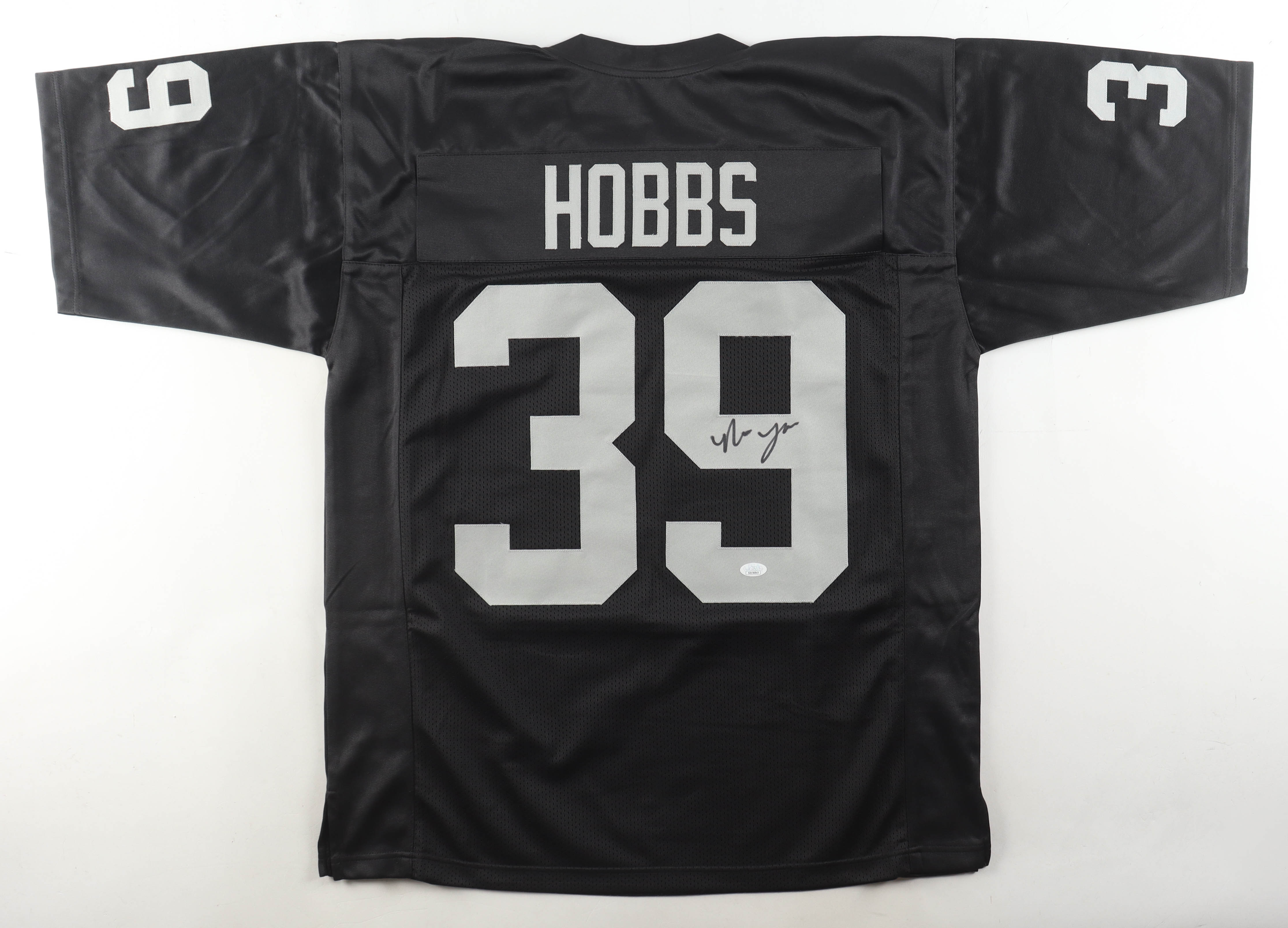 Custom jersey with everything sewn on, size L. Hand-signed by Nate Hobbs.