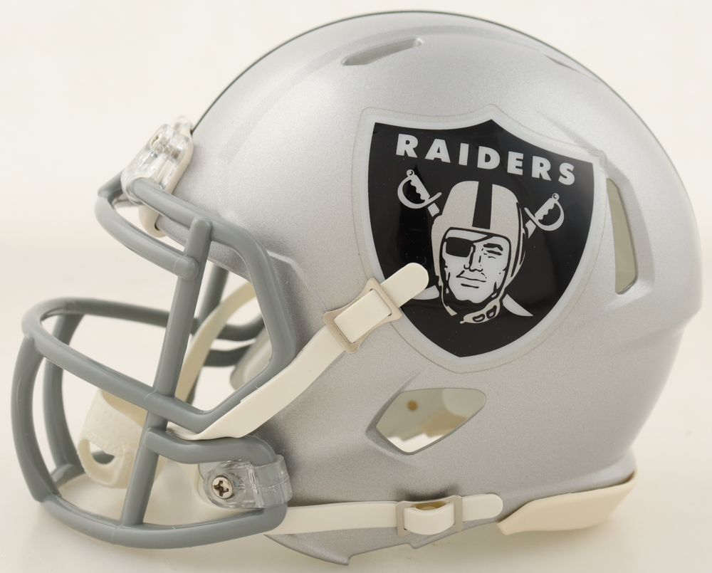 Riddell Oakland Raiders Speed mini helmet. Hand-signed by Bill Romanowski.
