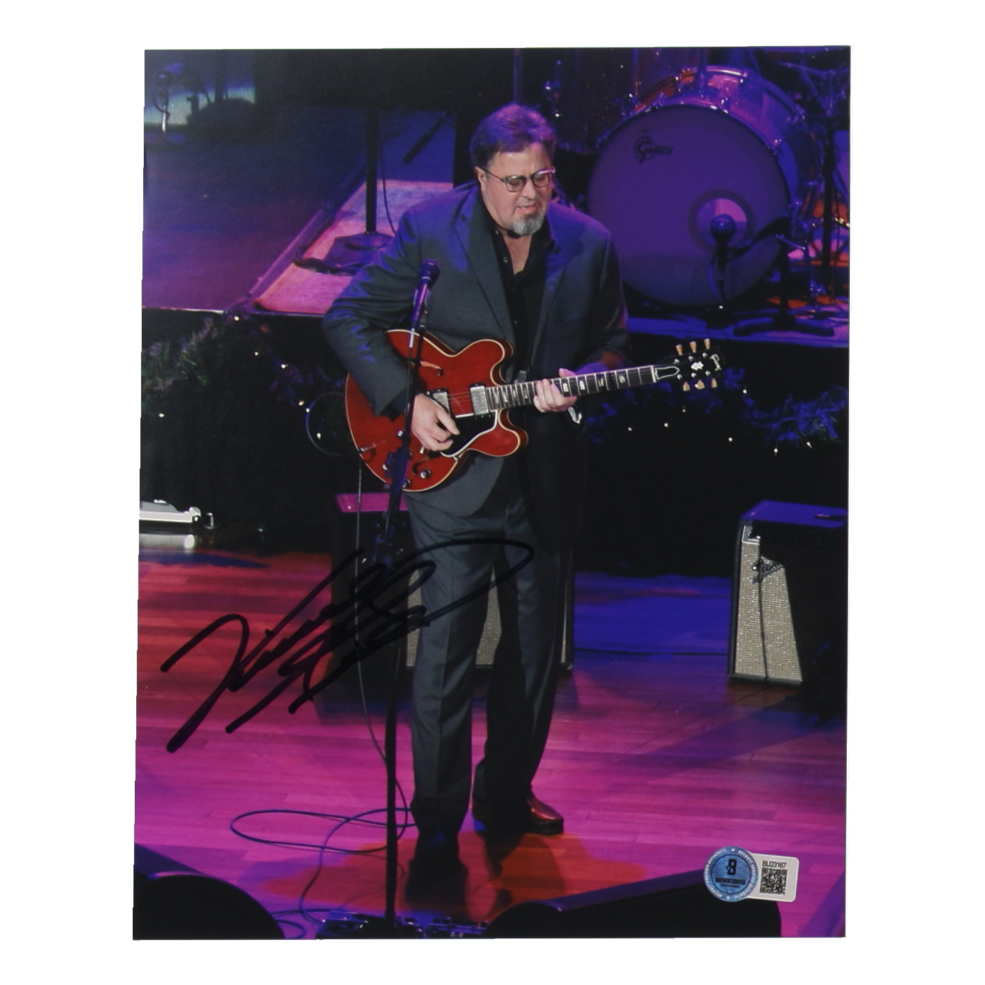 Photo measures 8” x 10” in size and has been hand-signed by Vince Gill.