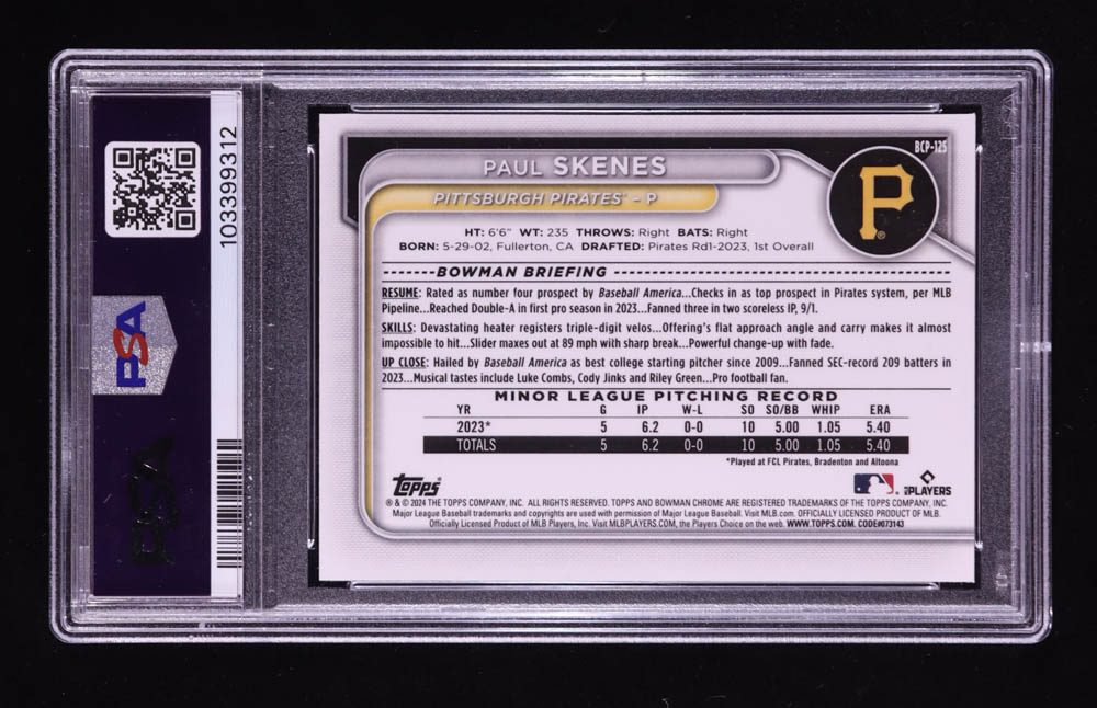 Paul Skenes 2024 Bowman Chrome Prospects #BCP125 RC (PSA 10)