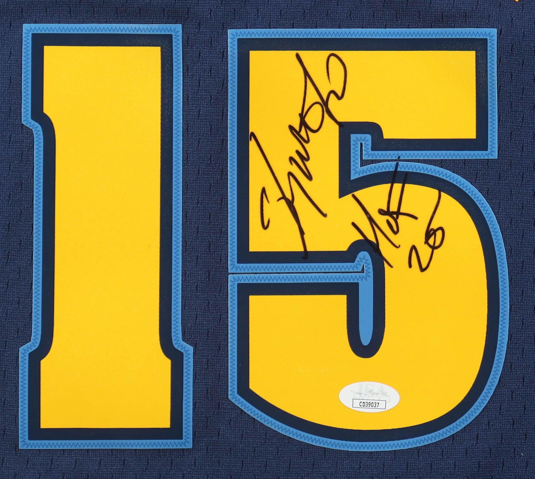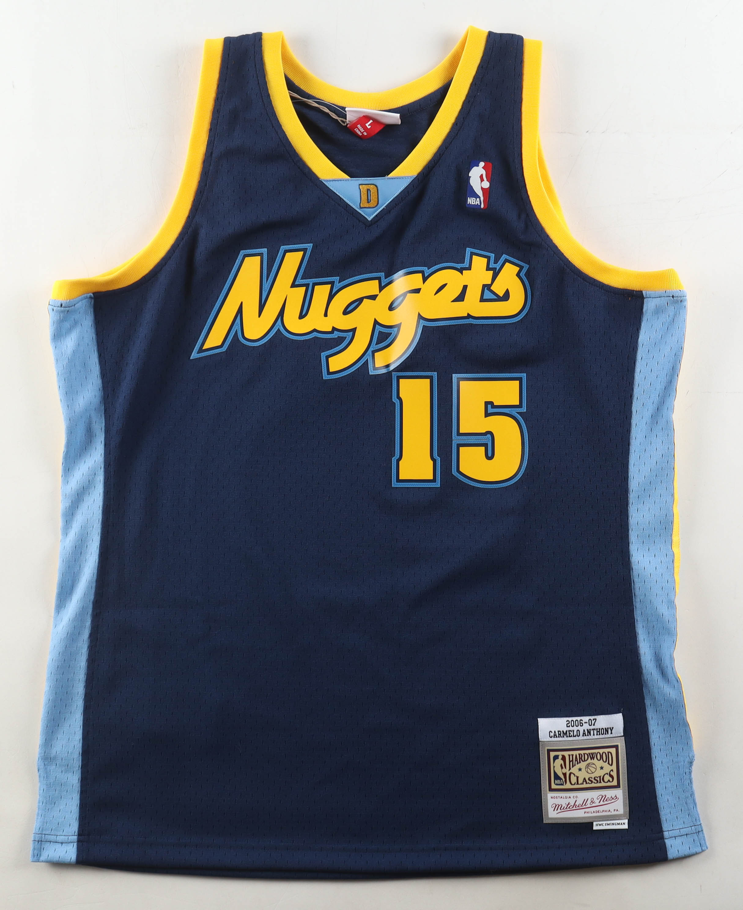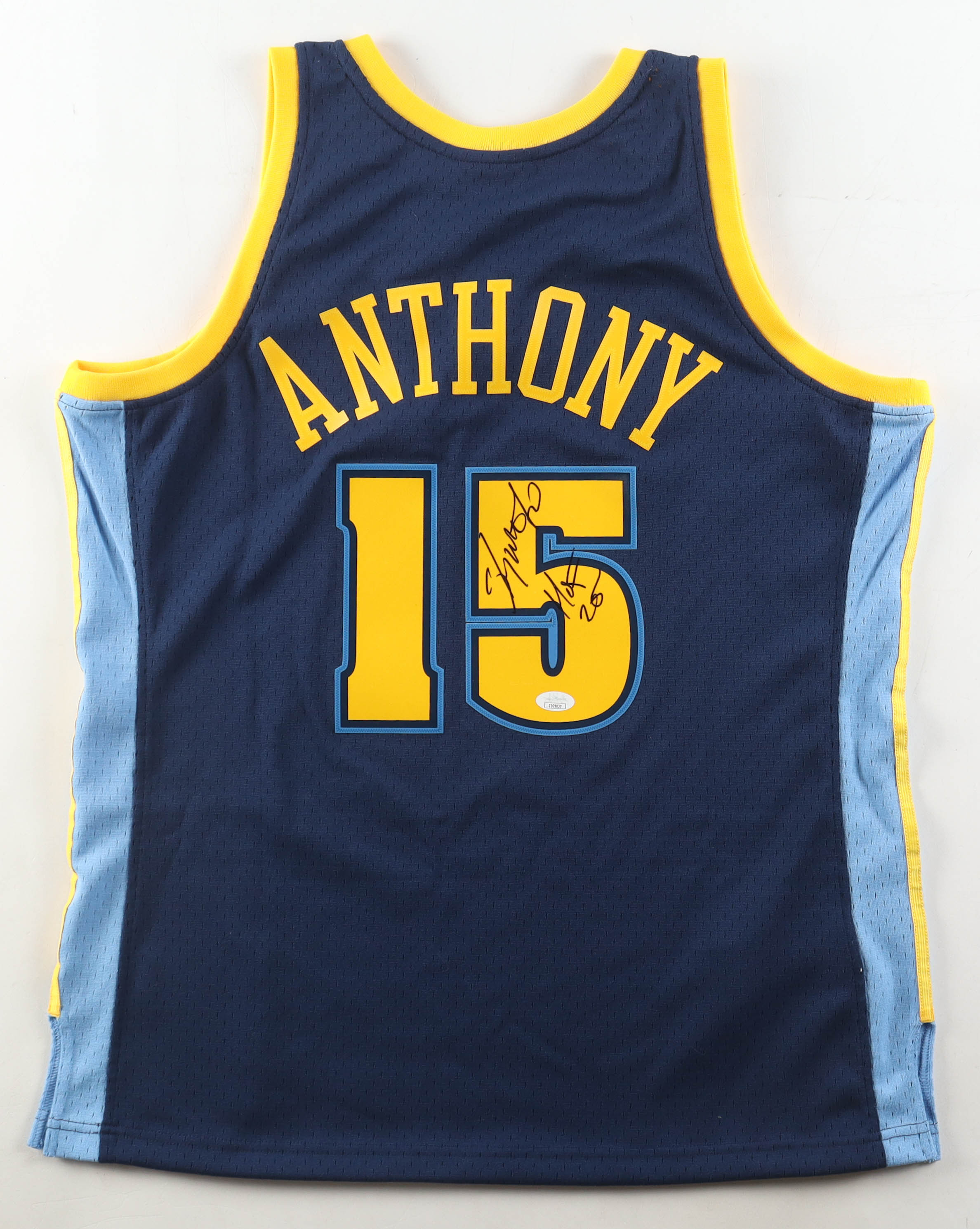 Mitchell & Ness authentic jersey with everything pressed on, size L. Hand-signed and inscribed by Carmelo Anthony (Denver Nuggets, HOF).