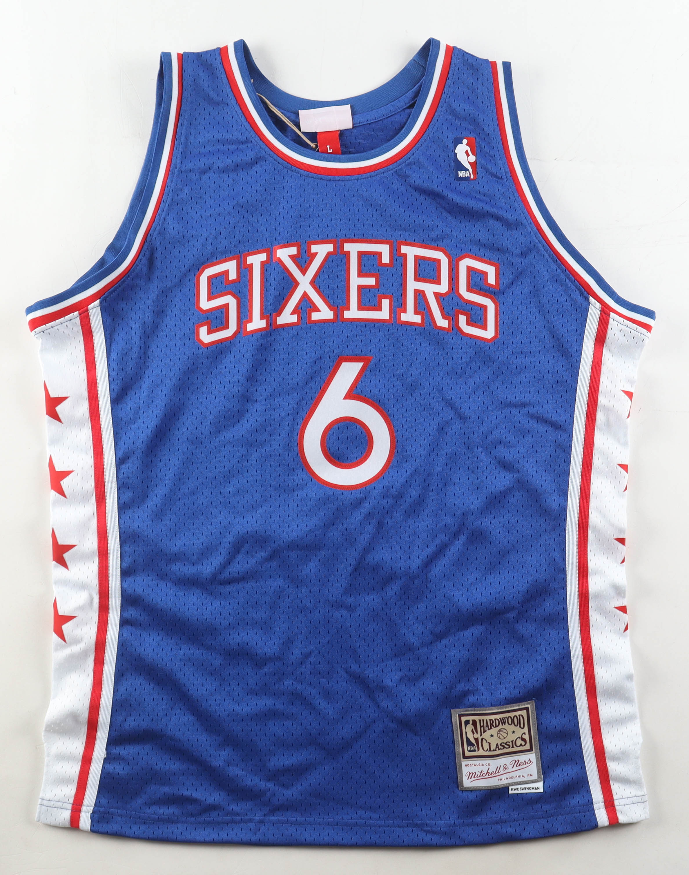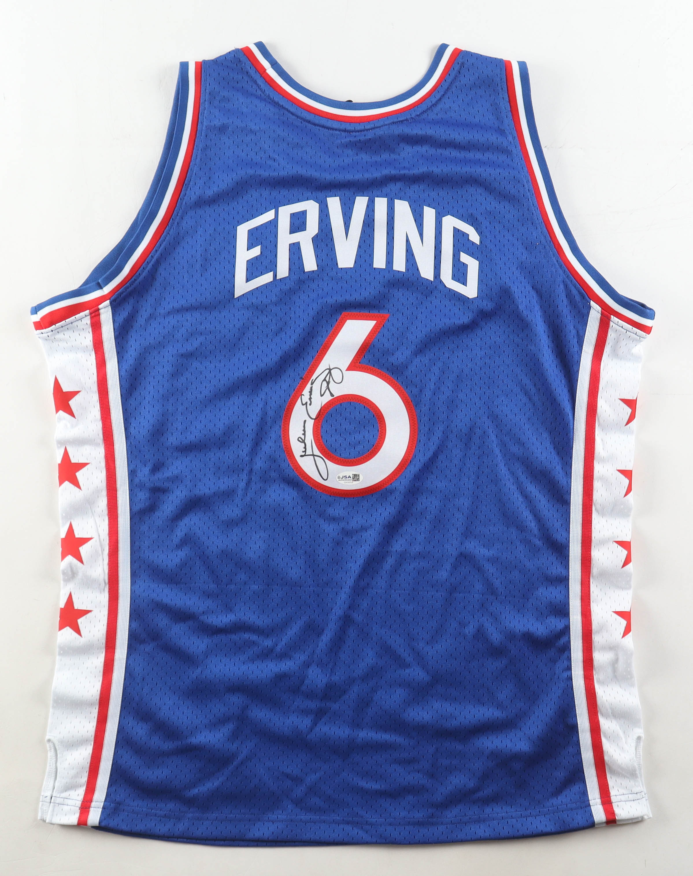 Mitchell & Ness authentic jersey with everything pressed on, size L. Hand-signed by Julius "Dr. J" Erving (HOF).