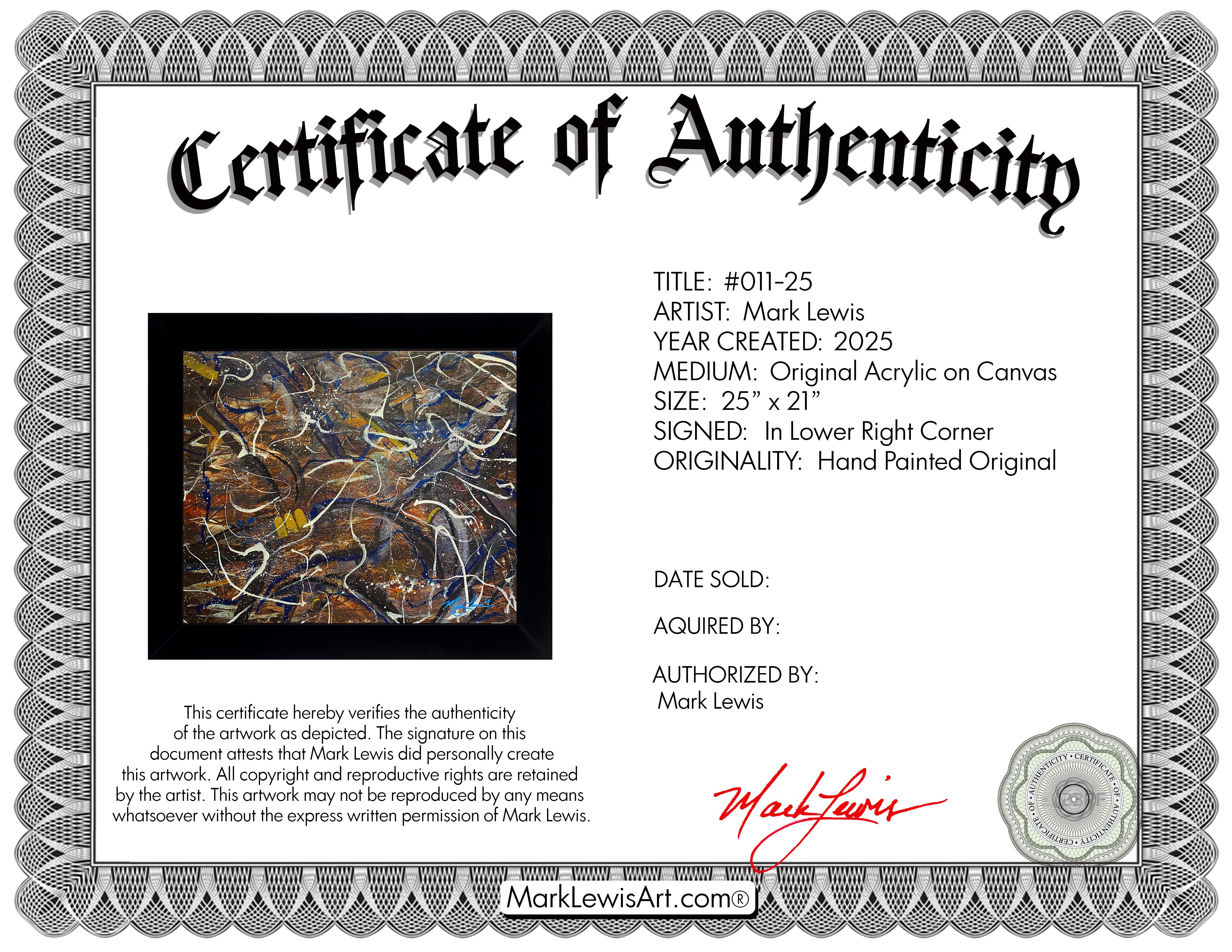 This painting represents not only the artistic growth of Mark Lewis but also a continuation of an American legacy that collectors find particularly appealing. With its bold acrylic execution and historical lineage, "011-25" stands as both an aesthetic triumph and a smart acquisition for the serious modern art investor.