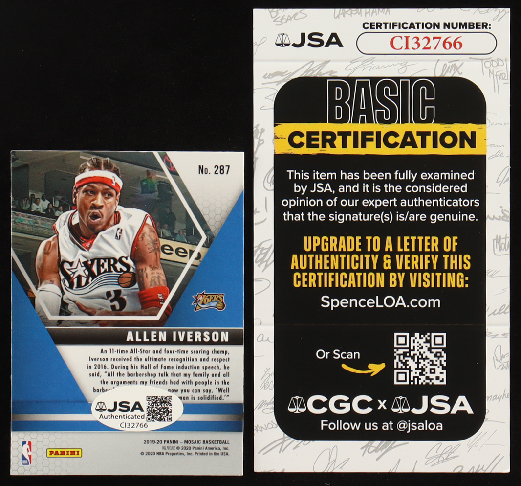 Allen Iverson Signed 2019-20 Panini Mosaic HOF #287 (JSA)
