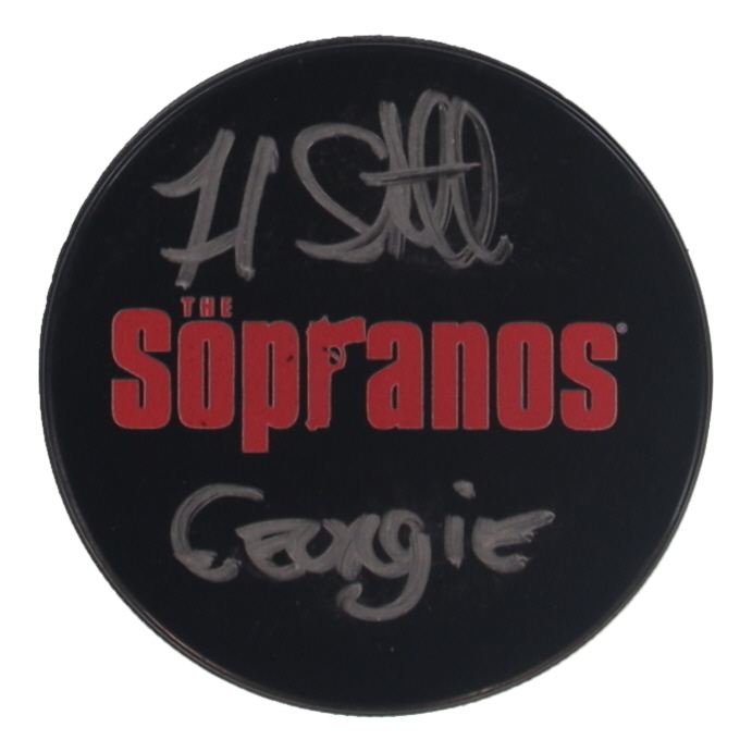 "The Sopranos" logo hockey puck has been hand-signed by Frank Santorelli.