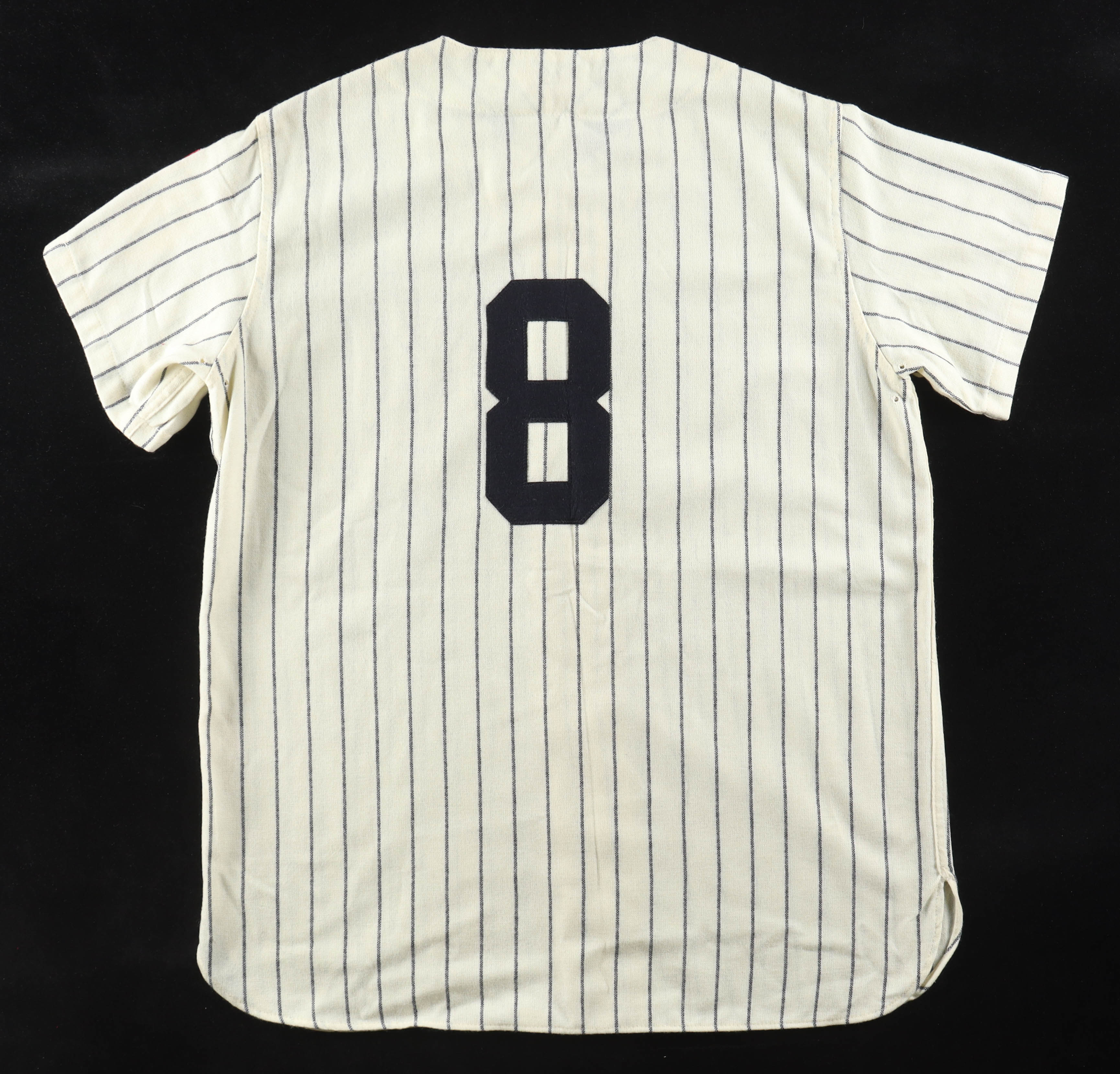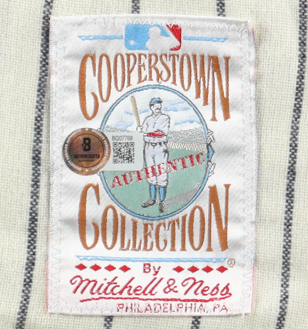 Mitchell & Ness Cooperstown Collection jersey. Everything is sewn on, size XL. Hand-signed by Yogi Berra (D. 2015, New York Yankees, HOF).