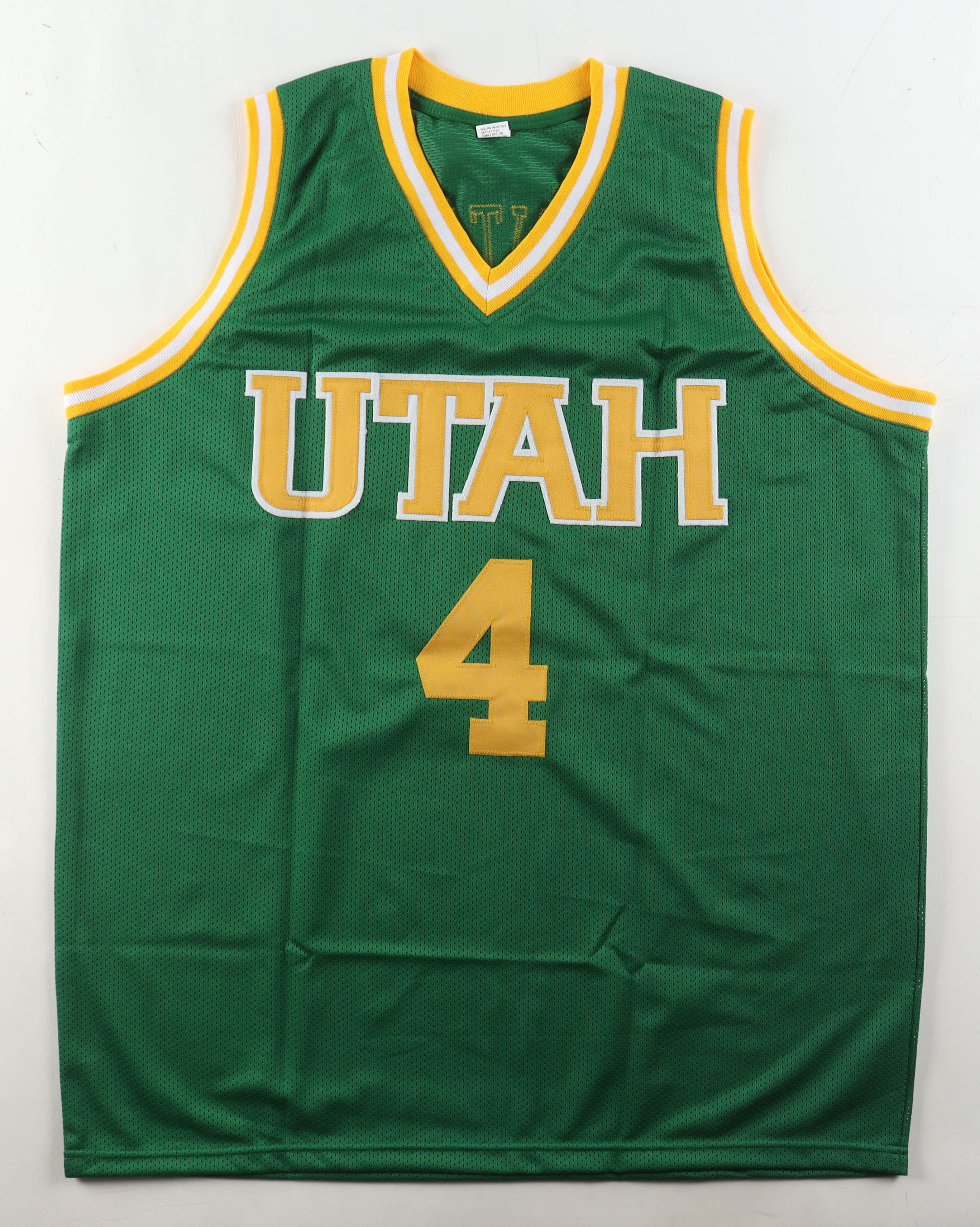 Custom jersey with everything sewn on, size XL. Hand-signed and inscribed by Adrian Dantley (Utah Jazz, HOF).