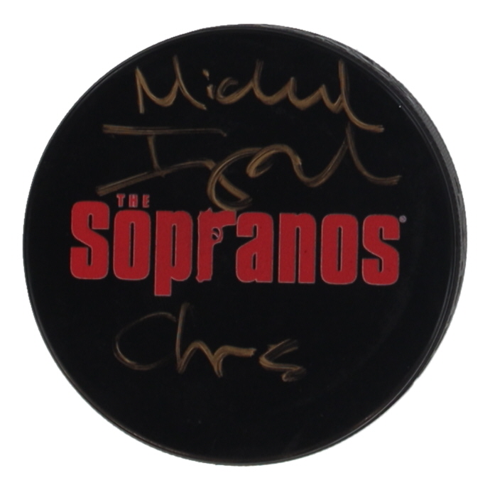 "The Sopranos" logo hockey puck has been hand-signed by Michael Imperioli.