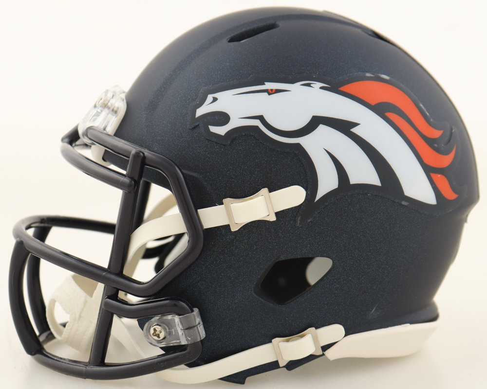 Riddell Denver Broncos speed mini helmet. Hand-signed by Riley Moss.