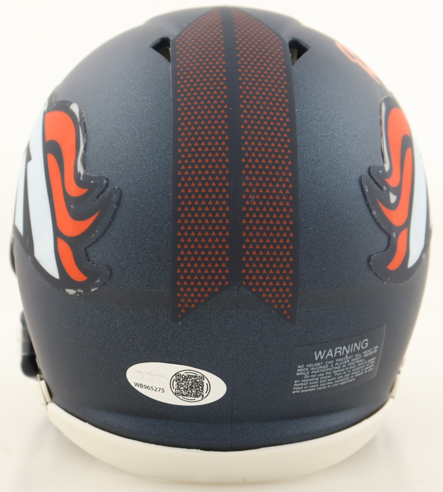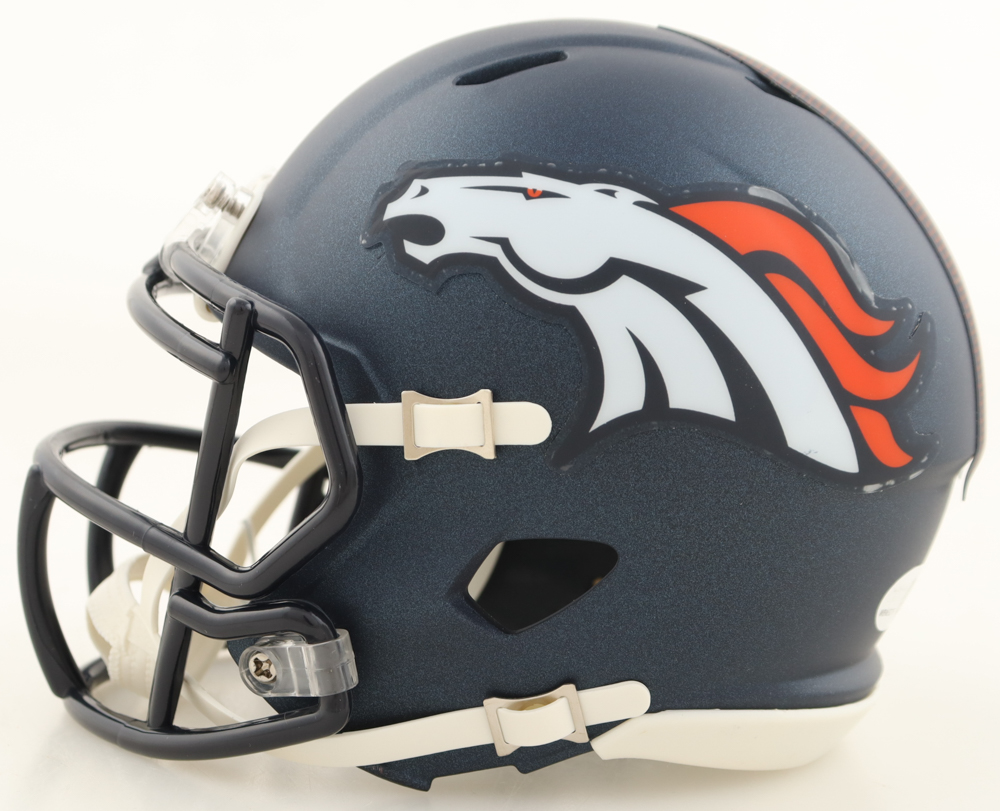Riddell Denver Broncos speed mini helmet. Hand-signed by RJ Harvey.