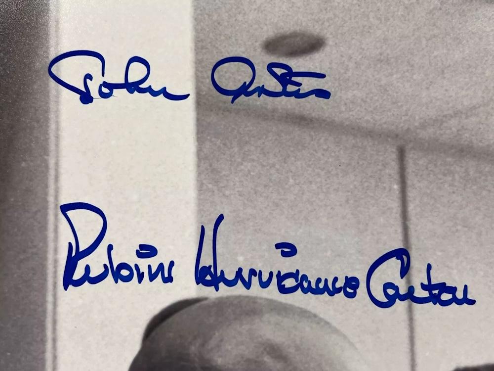 Photo measures 11” x 14” in size and has been hand-signed by Rubin "Hurricane" Carter (D. 2014) and John Artis (D. 2021).