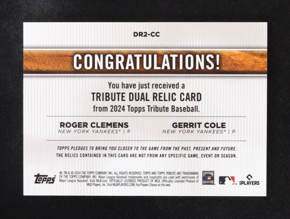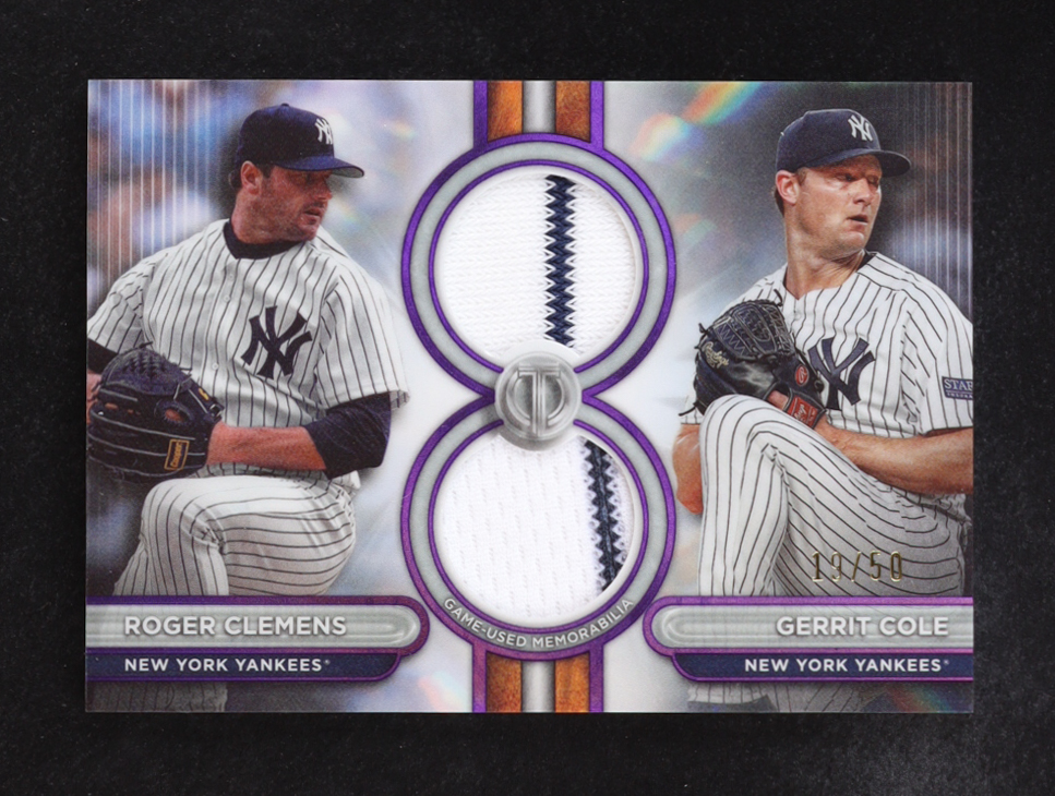Roger Clemens / Gerrit Cole 2024 Topps Tribute Dual Player Relics Purple #DR2CC #19/50