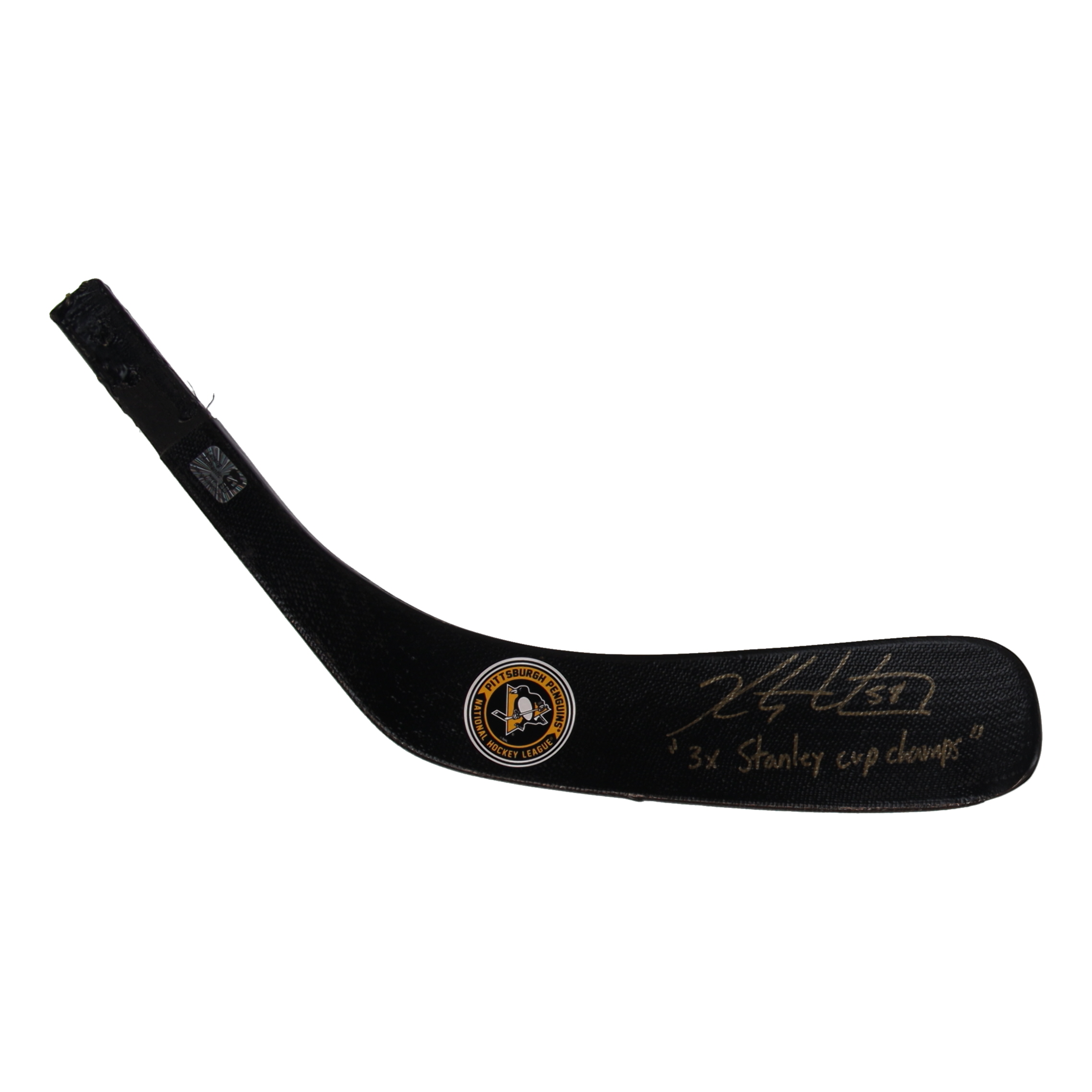 Full-Size Pittsburgh Penguins Ferland hockey stick blade. Hand-signed by Kris Letang.