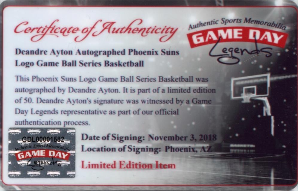 Deandre Ayton Signed Suns LE Logo NBA Game Ball Series Basketball (Game Day Legends & Steiner)