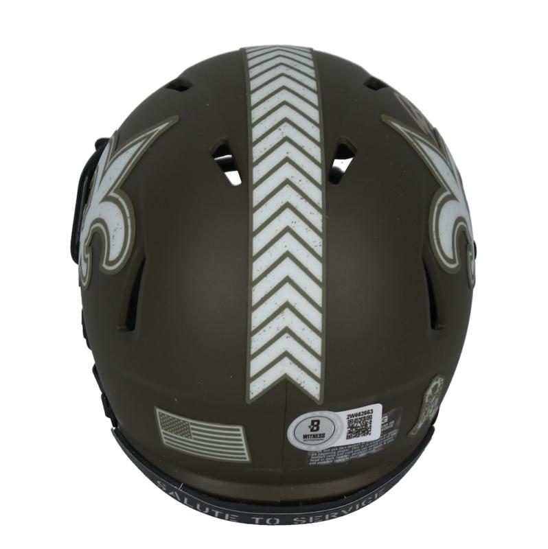 Riddell New Orleans Saints salute to service alternate speed mini helmet. Hand-signed by Rashid Shaheed.