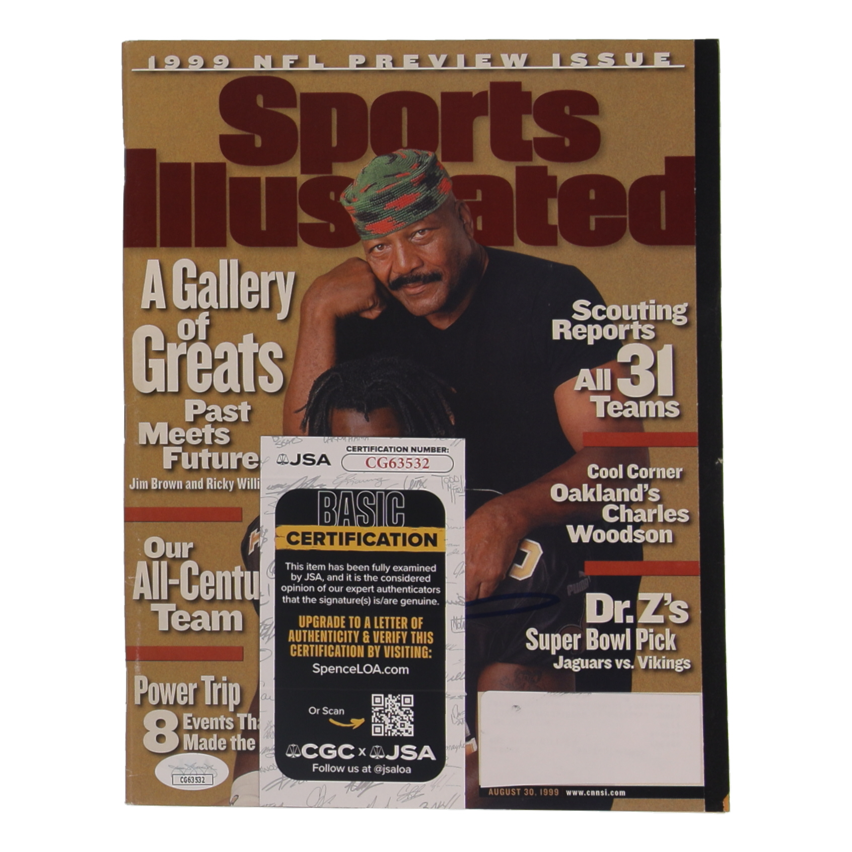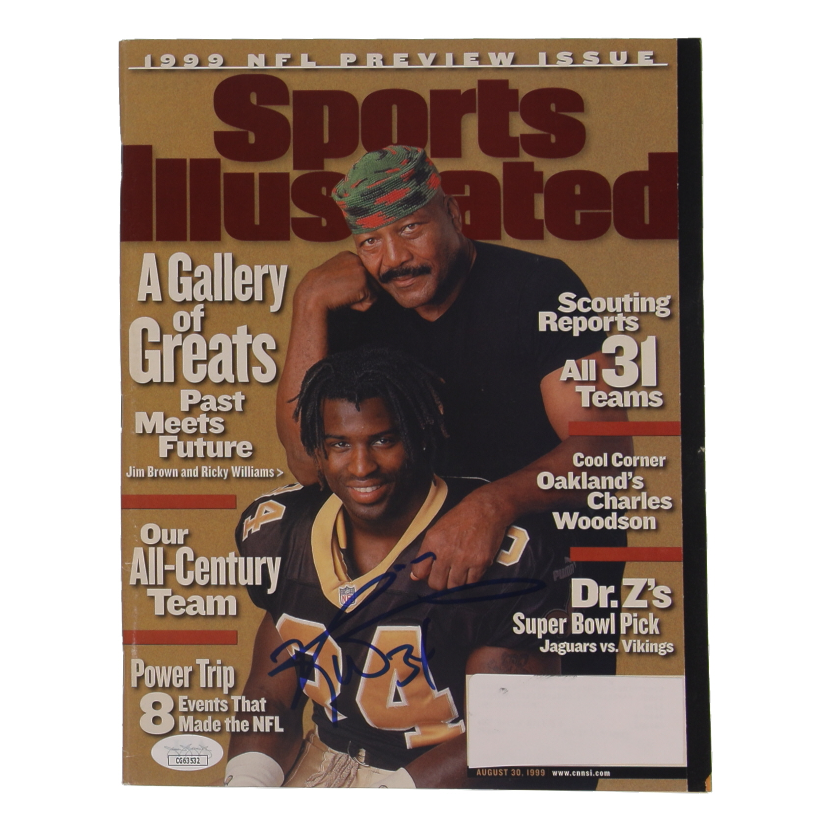 Magazine dated August 30, 1999 has been hand-signed by Ricky Williams (New Orleans Saints).