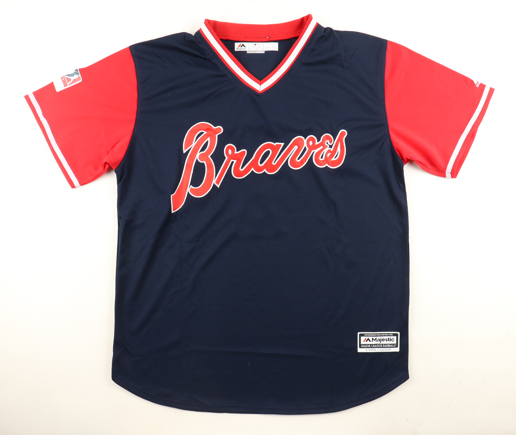 Authentic Majestic jersey with everything sewn on, size L. Hand-signed by Ozzie Albies.