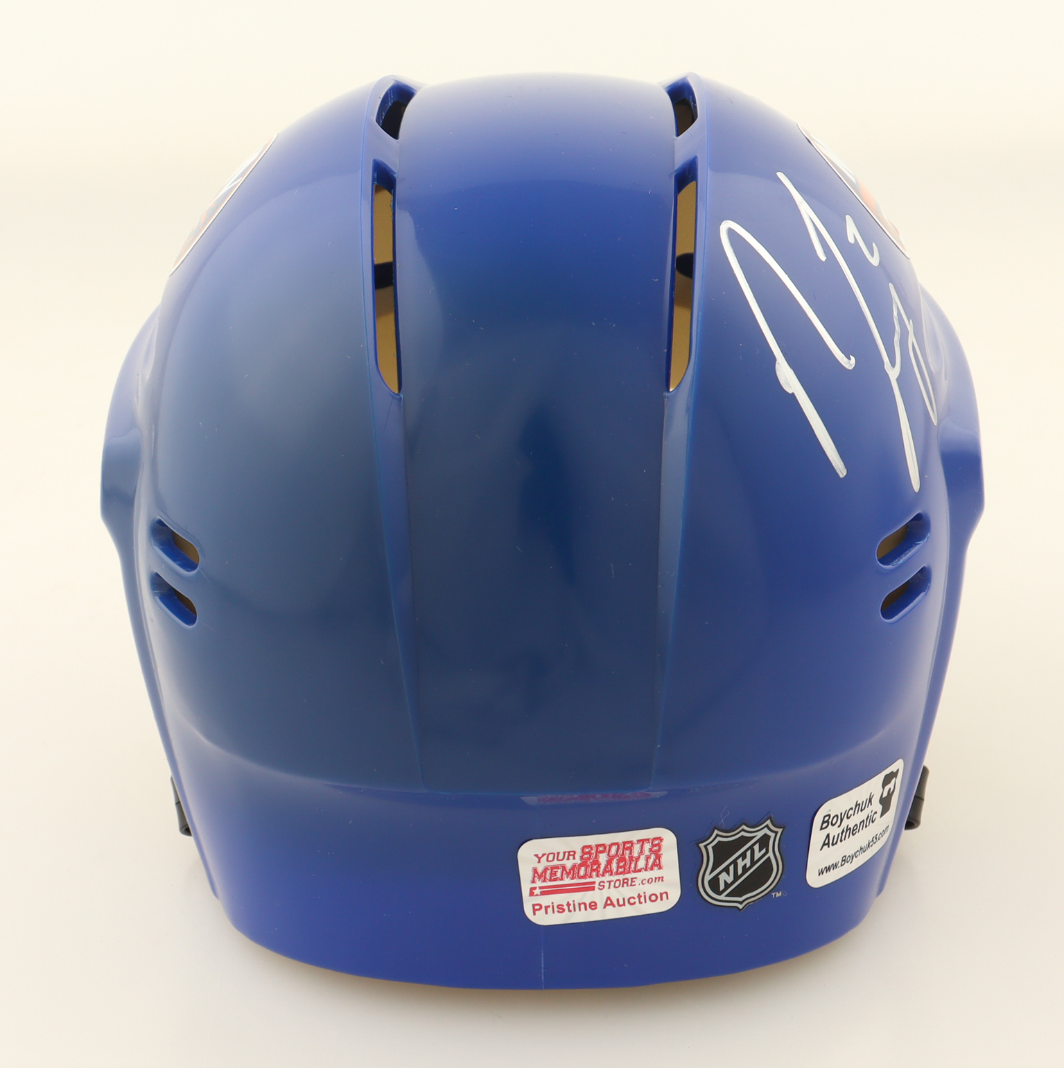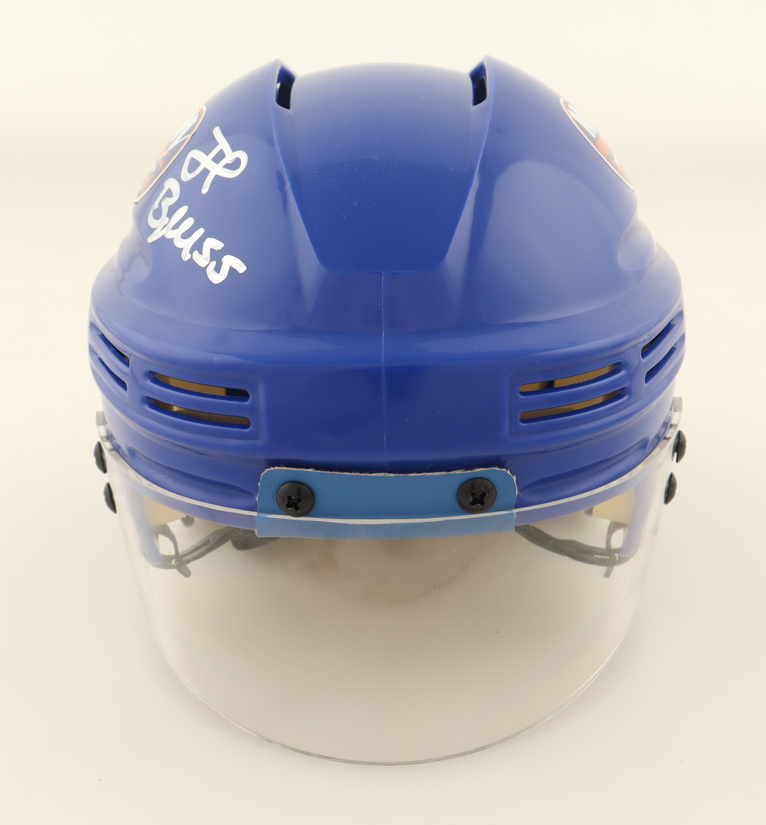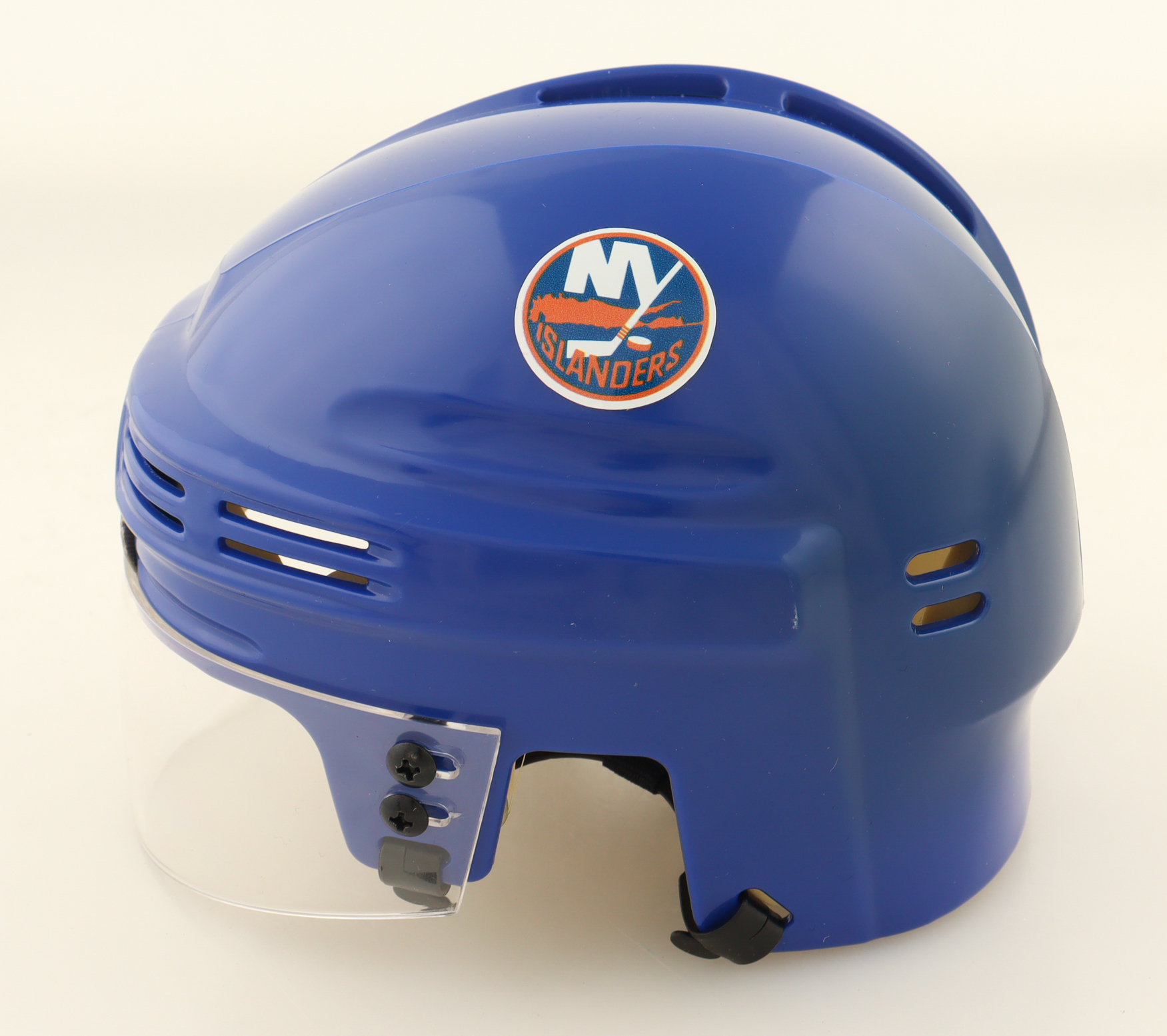 New York Islanders mini helmet has been hand-signed by Johnny Boychuk and Nick Leddy.