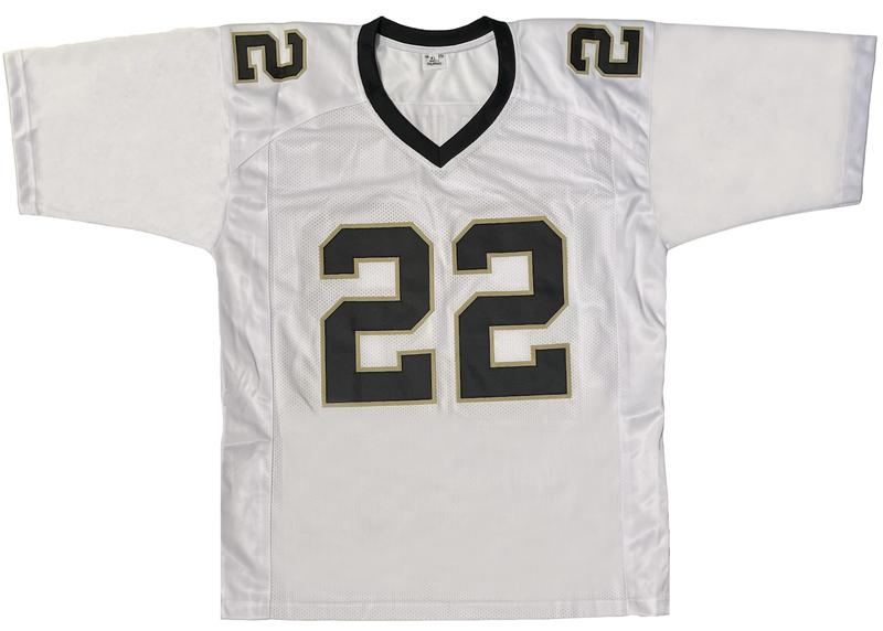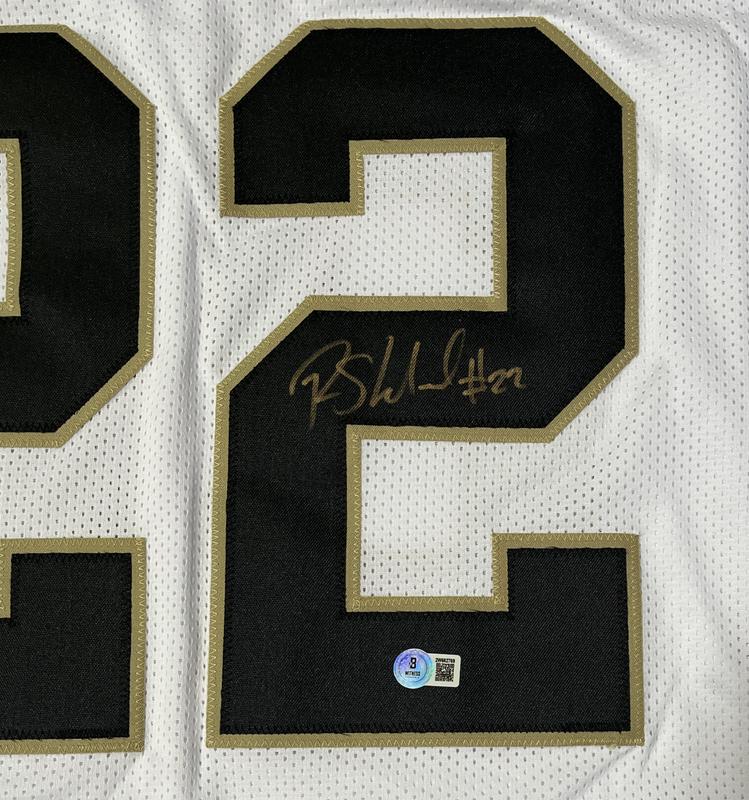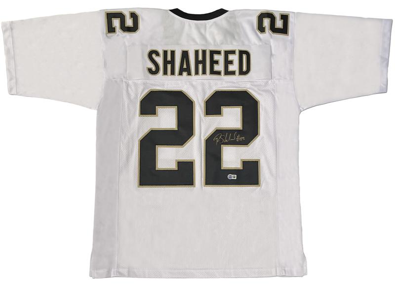 Custom jersey with everything sewn on, size 48. Hand-signed by Rashid Shaheed.
