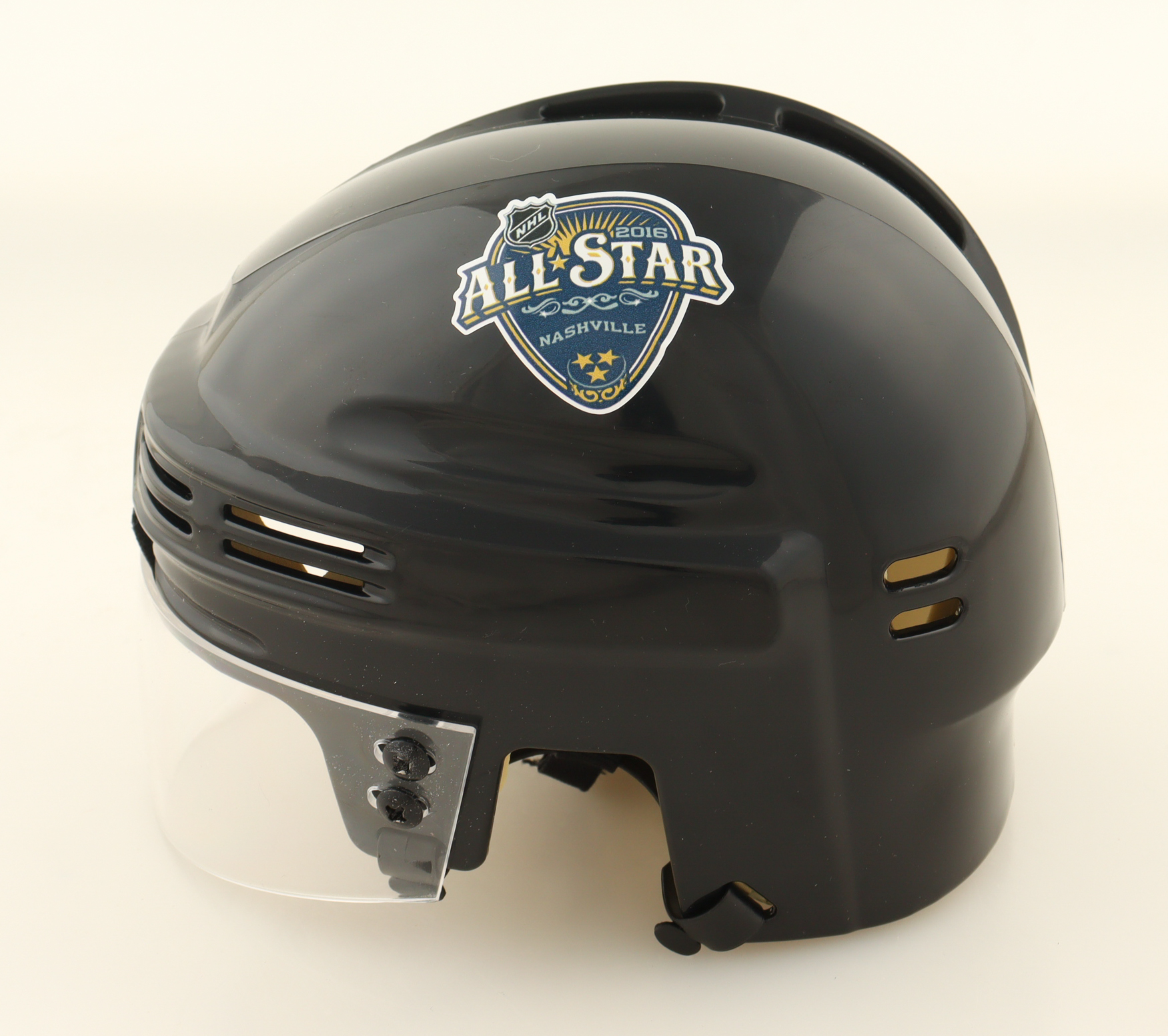 2016 All-Star Game logo mini helmet has been hand-signed by John Beecher (Boston Bruins).
