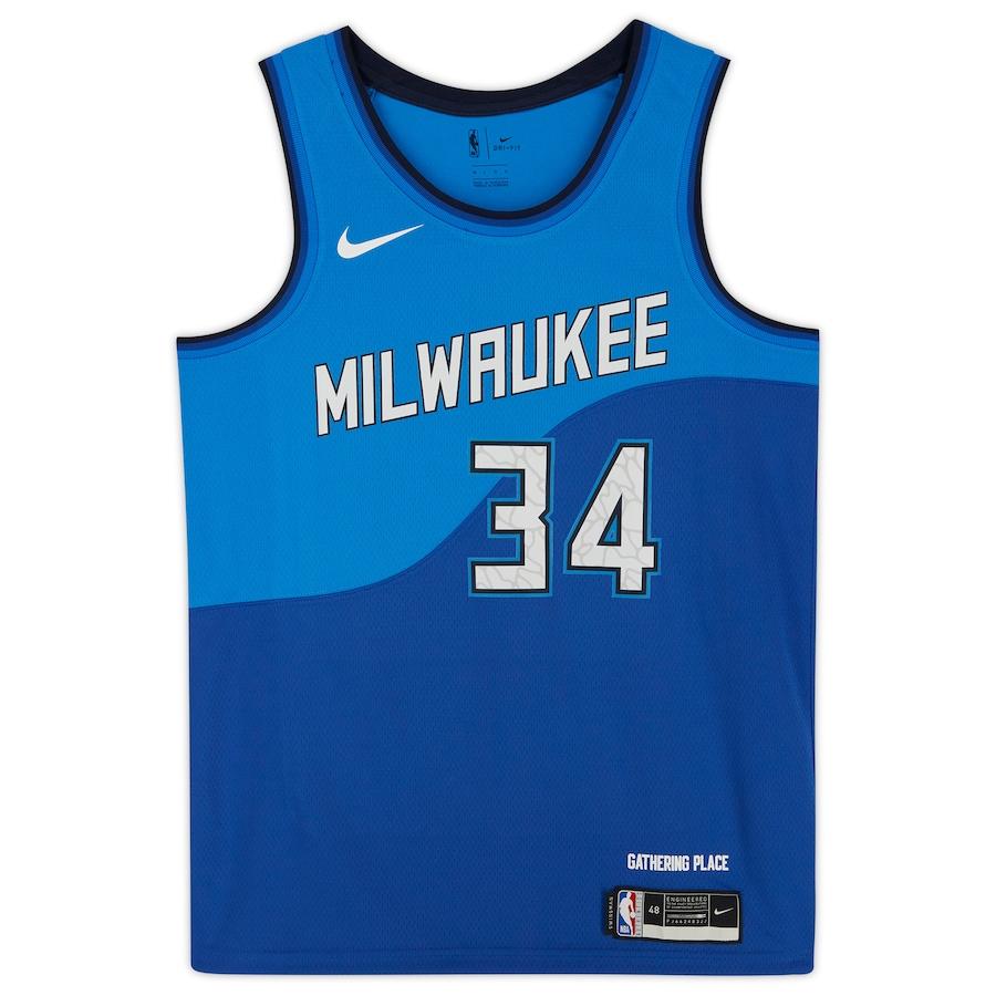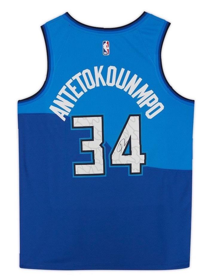 Nike style jersey. Everything printed on, size 48. Hand-signed by Giannis Antetokounmpo (Milwaukee Bucks).